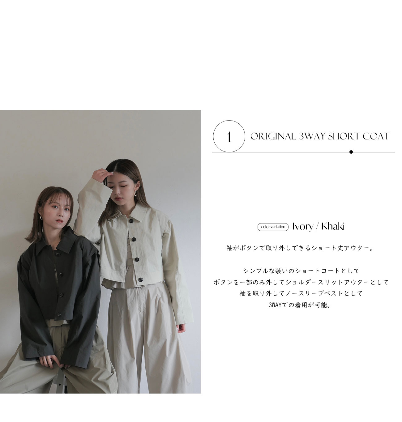 他の画像を見る 【SPECIAL PRICE】 original 3way short coat ORIGINAL 定価 ¥ 13,750 のところ ¥ 9,900 税込 販売期間 2026/04/10 12:00 〜 カートに入れる お気に入りに登録する