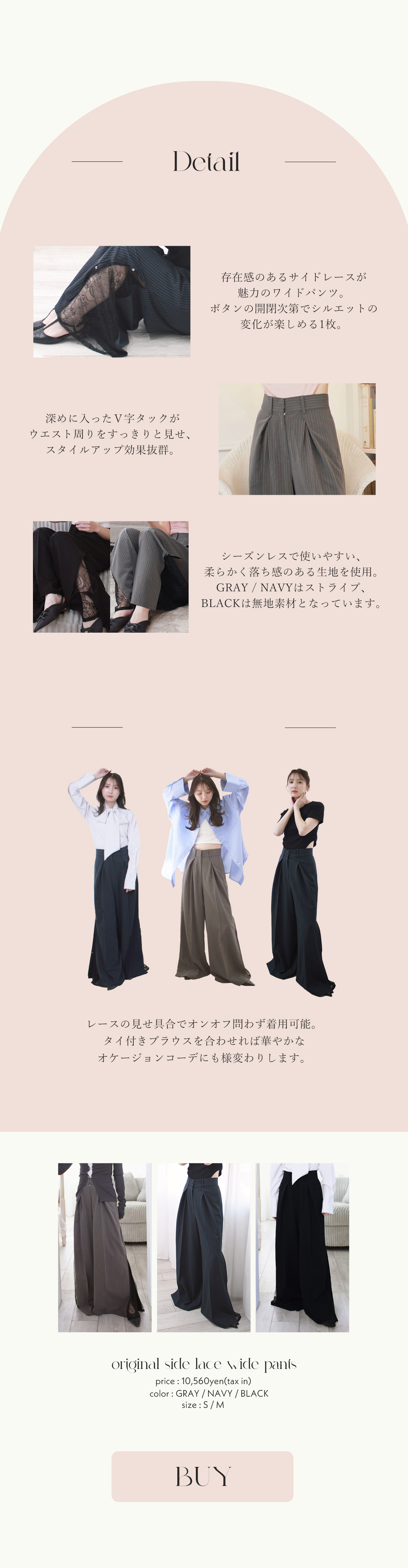 【SPRING FAIR】 original side lace wide pants