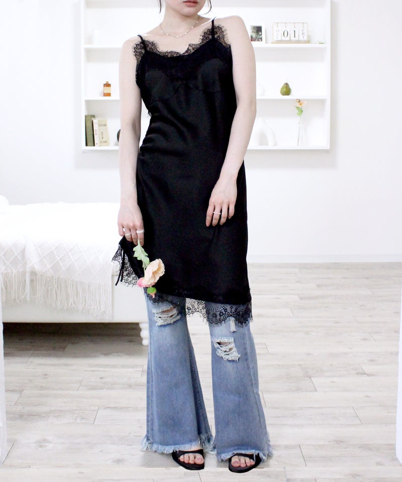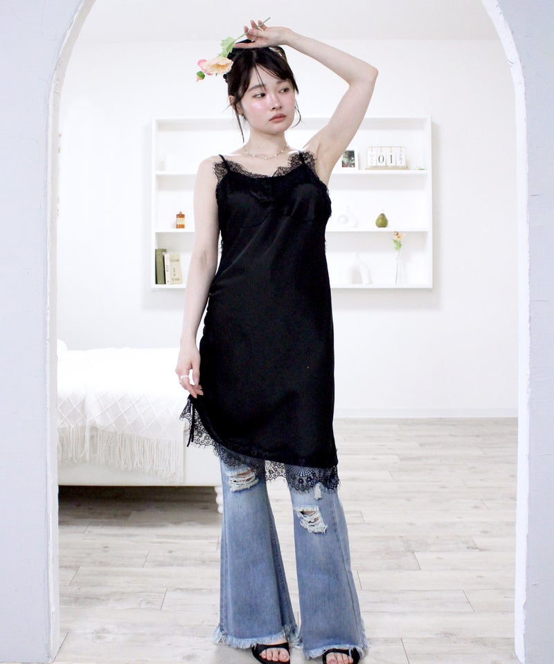 オリジナルドロストサテンキャミワンピース