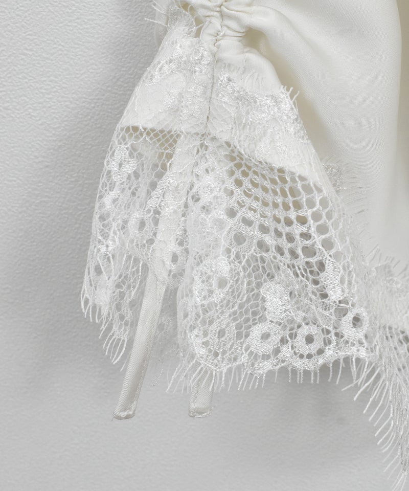 女性らしいサテン素材に、大ぶりなスカラップレースをふんだんにあしらい、華やかな印象に仕上げました。
