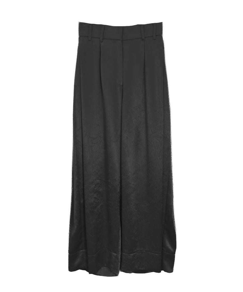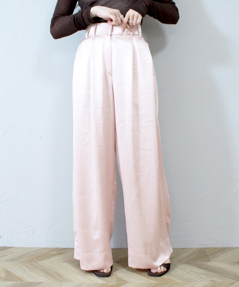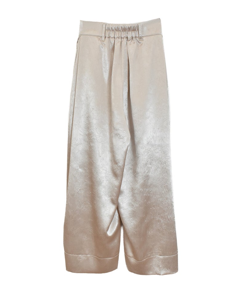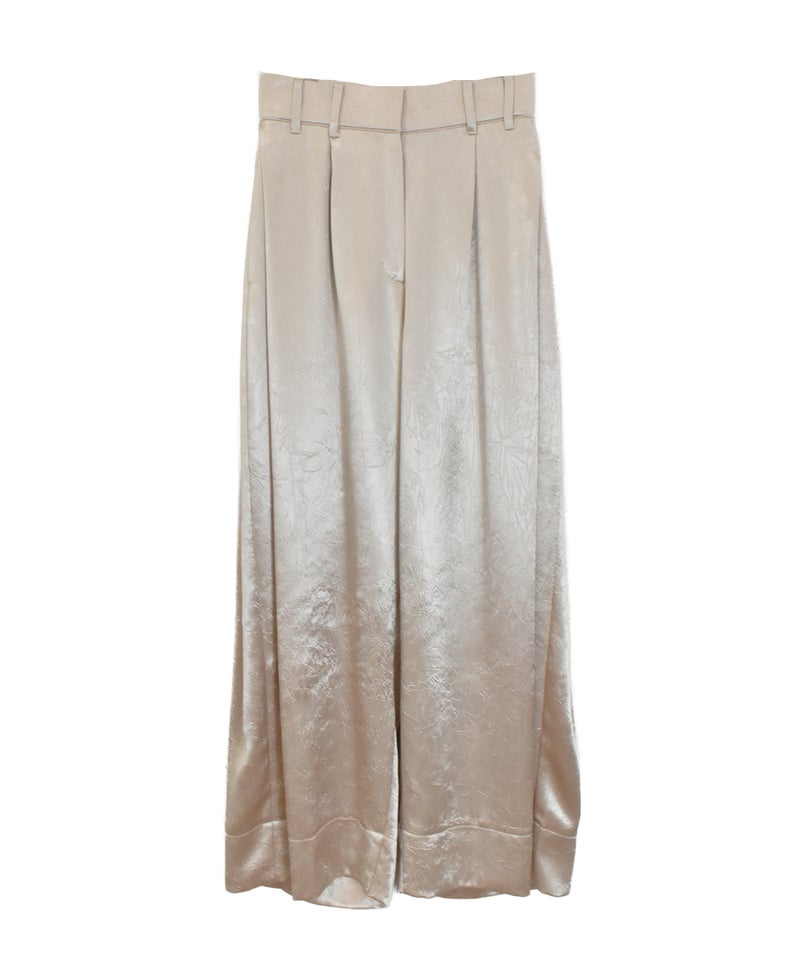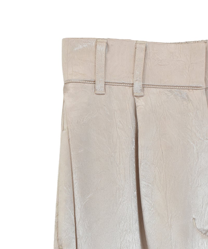 サイドに入れたタックから広がるワイドシルエットが特徴で、