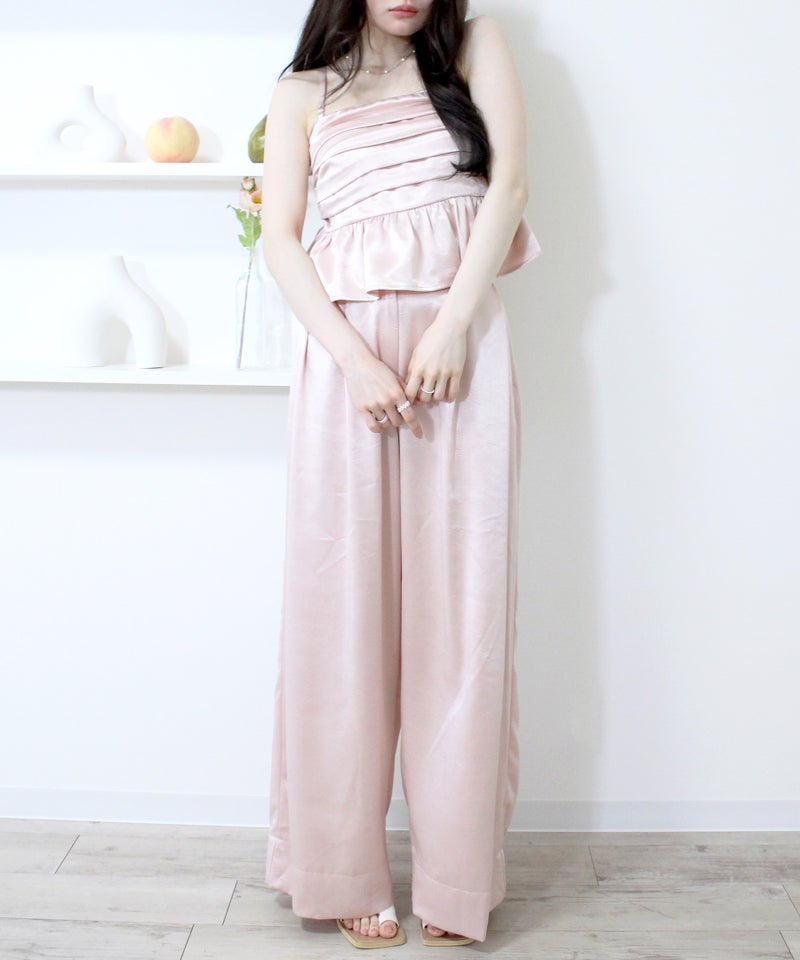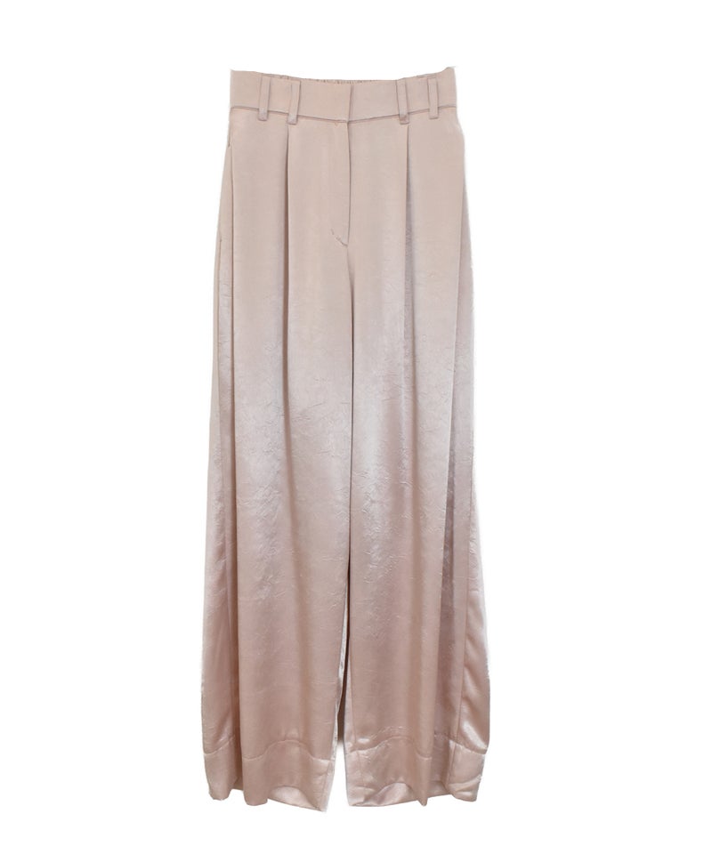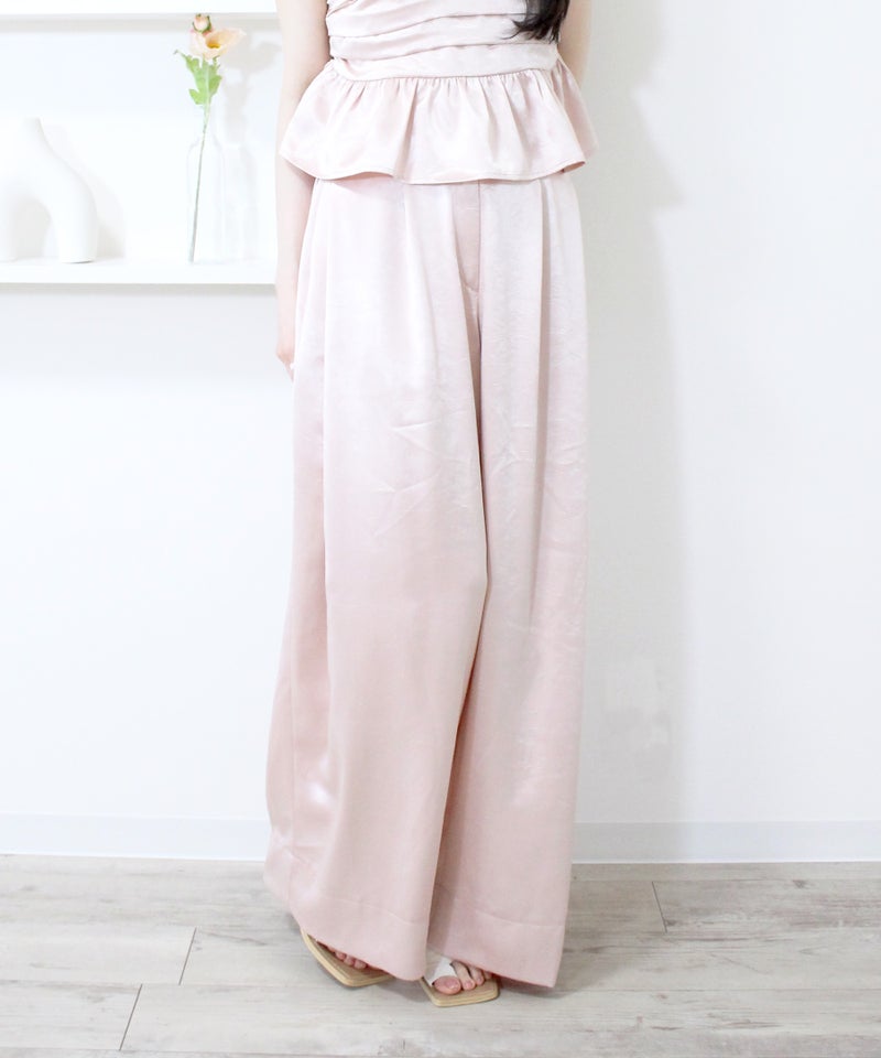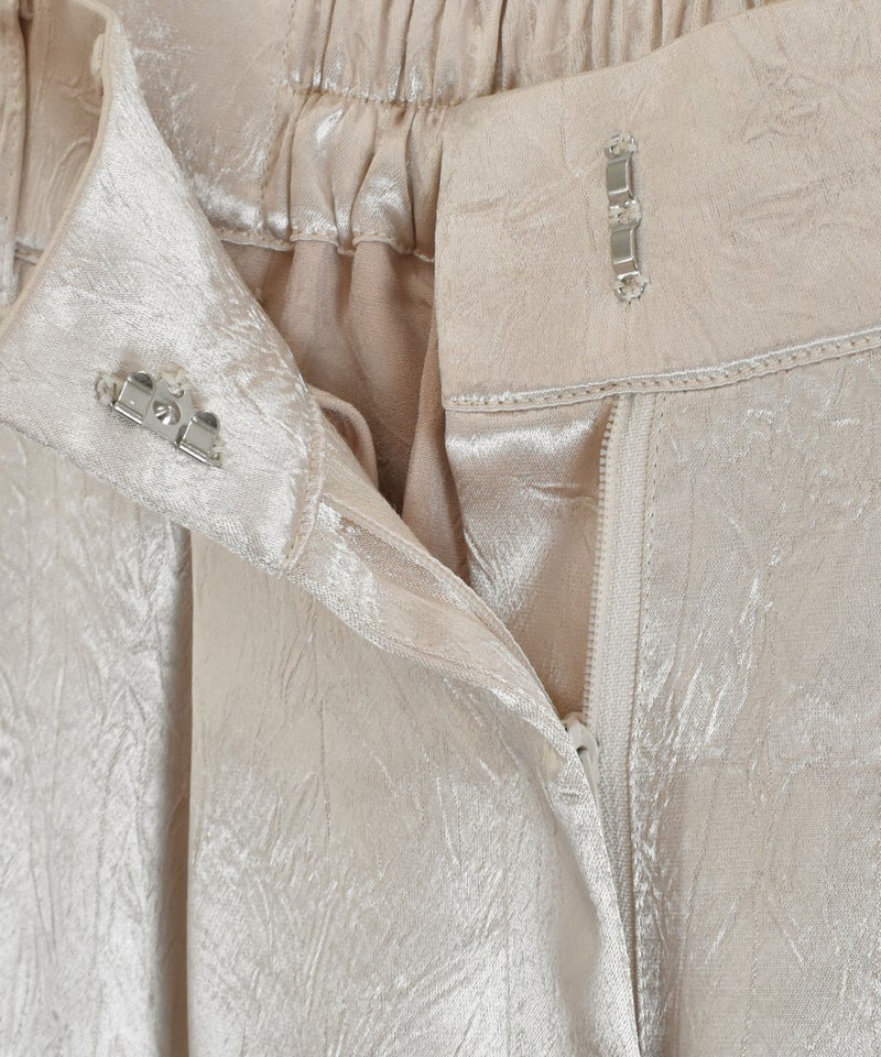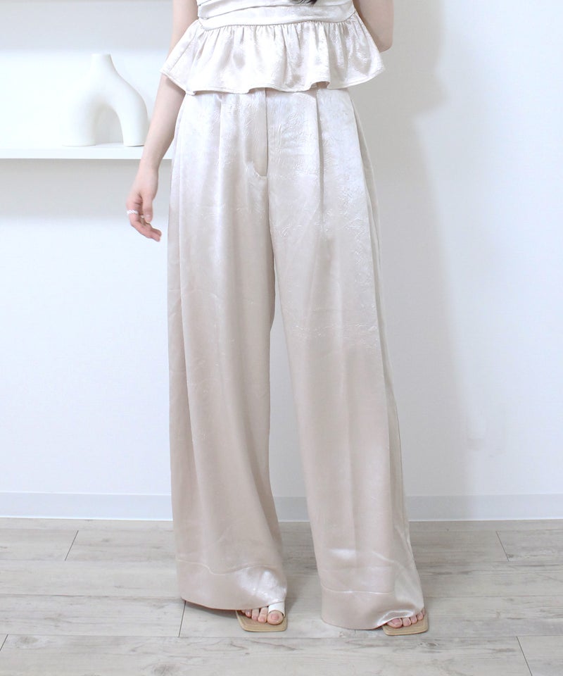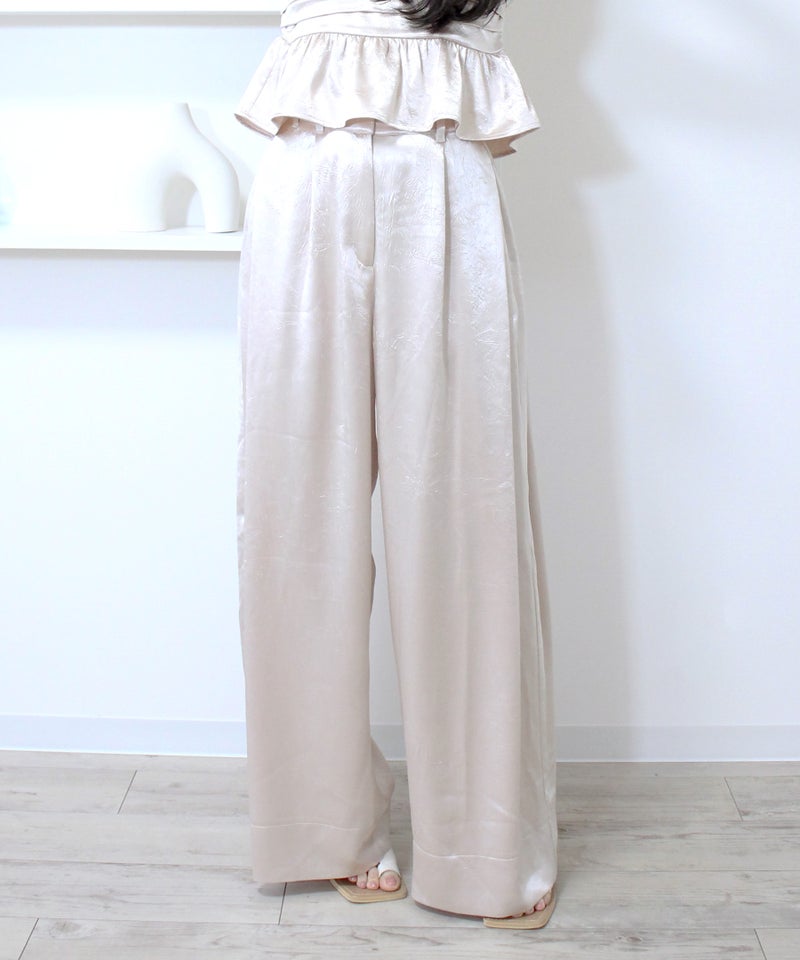 サイドに入れたタックから広がるワイドシルエットが特徴で、