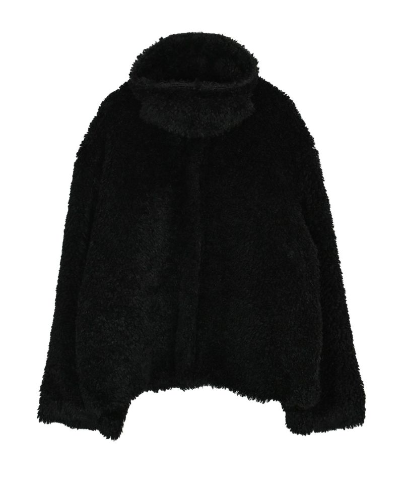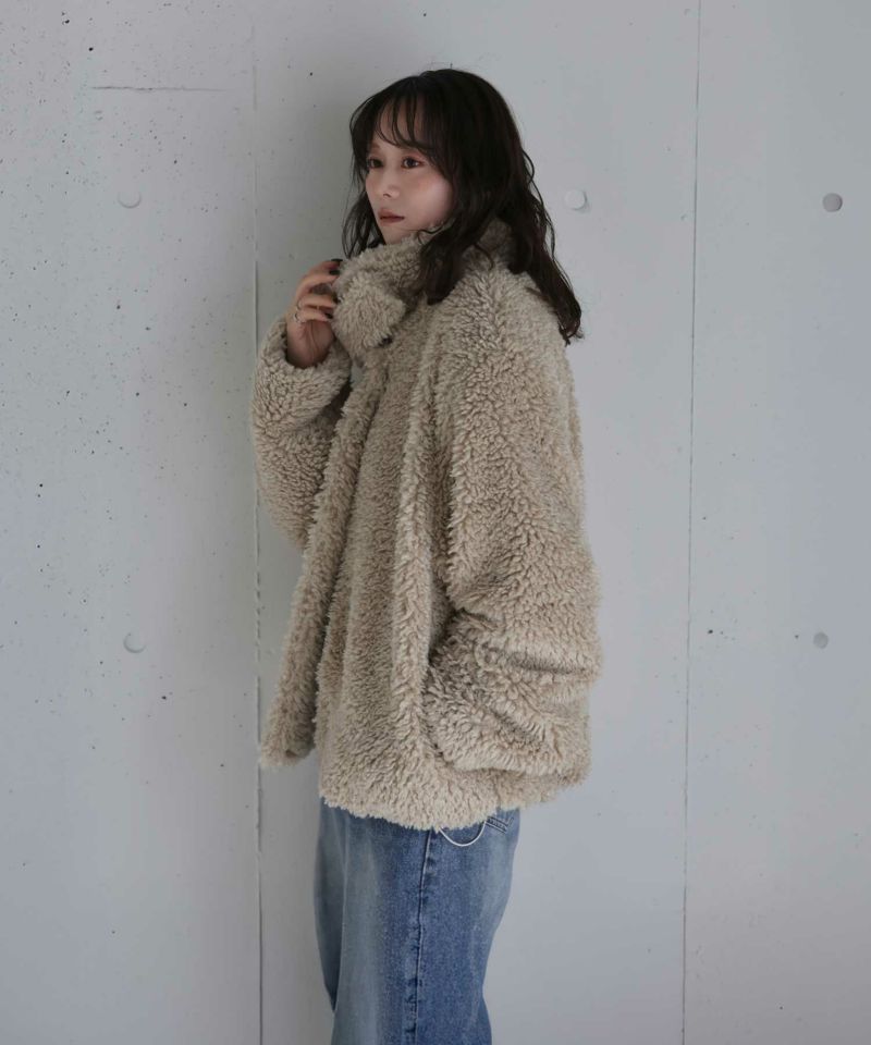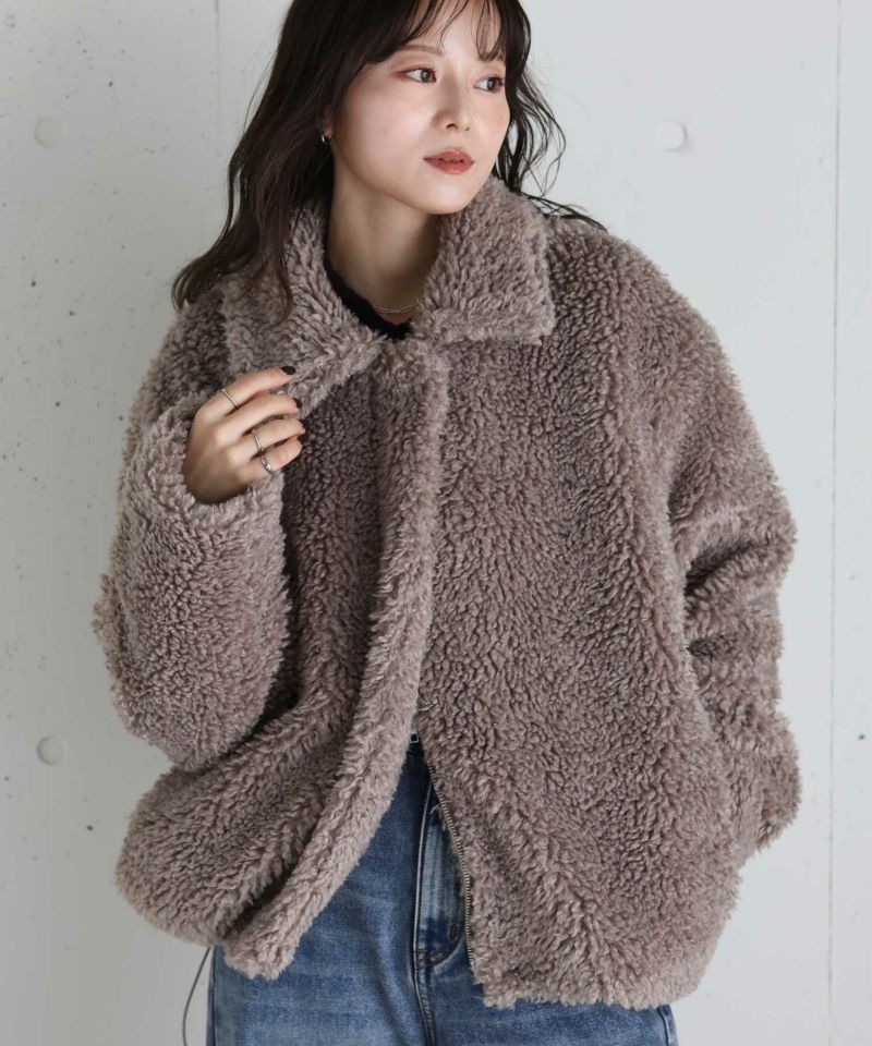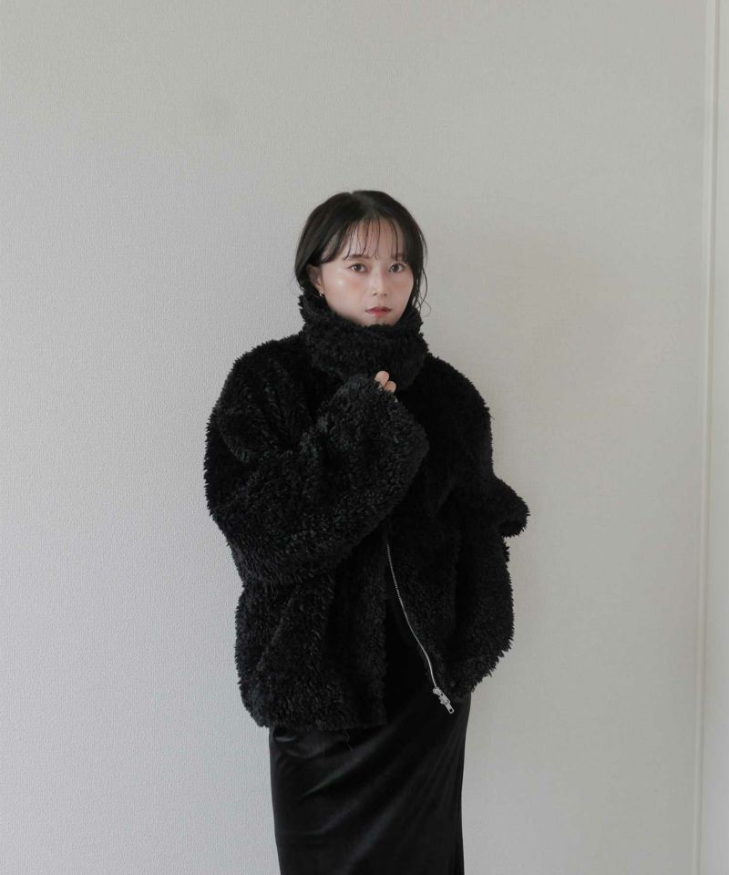 存在感たっぷりのファー素材を使用したショートコート。