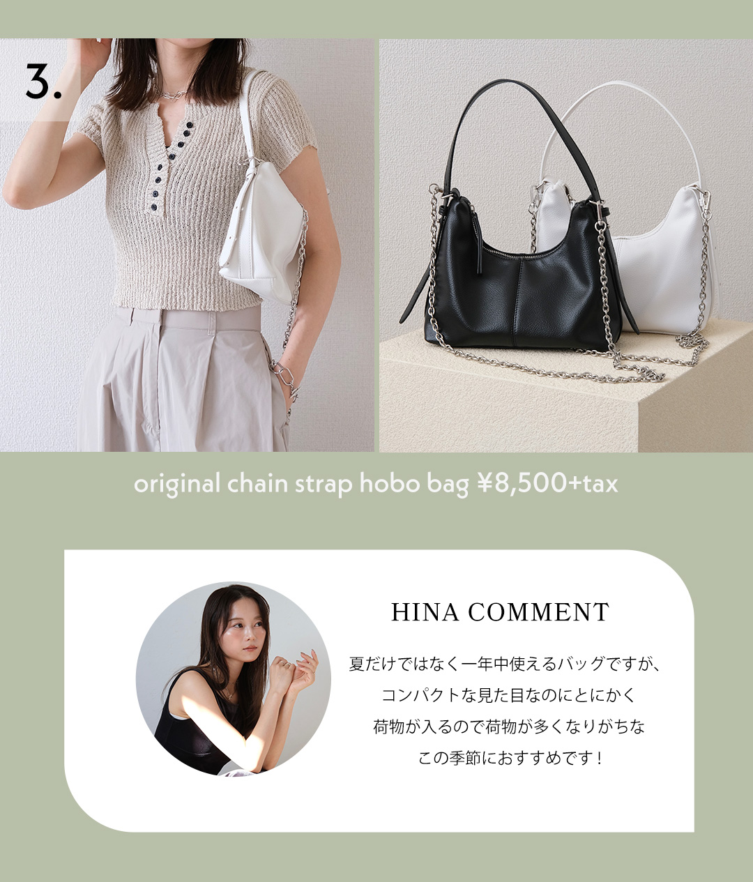 他の画像を見る 【GW SALE】 original chain strap hobo bag HIT ITEM ORIGINAL 定価 ¥ 9,350 のところ ¥ 8,580 税込 販売開始前です。 販売期間 2026/04/28 12:00 〜 2026/05/07 11:59 カートに入れる お気に入りに登録する