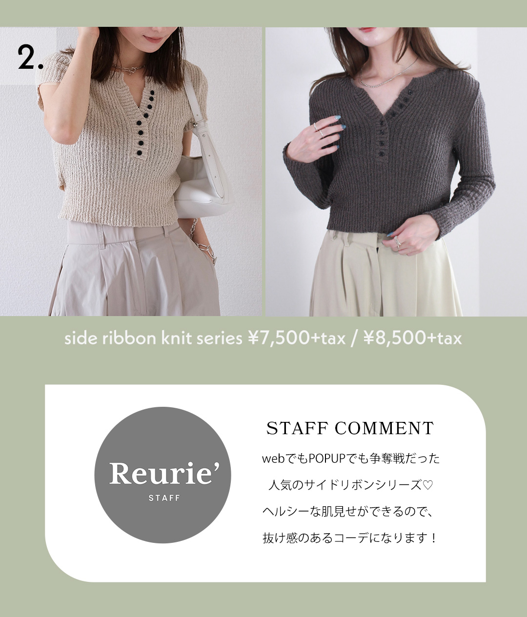 他の画像を見る 【GW SALE】 half sleeve side ribbon compact knit HIT ITEM 定価 ¥ 8,250 のところ ¥ 7,700 税込 販売開始前です。 販売期間 2026/04/28 12:00 〜 2026/05/07 11:59 カートに入れる お気に入りに登録する