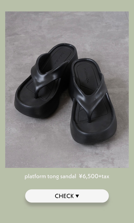 他の画像を見る 【GW SALE】 platform tong sandal HIT ITEM 定価 ¥ 7,150 のところ ¥ 6,820 税込 販売開始前です。 販売期間 2026/04/28 12:00 〜 2026/05/07 11:59 カートに入れる お気に入りに登録する
