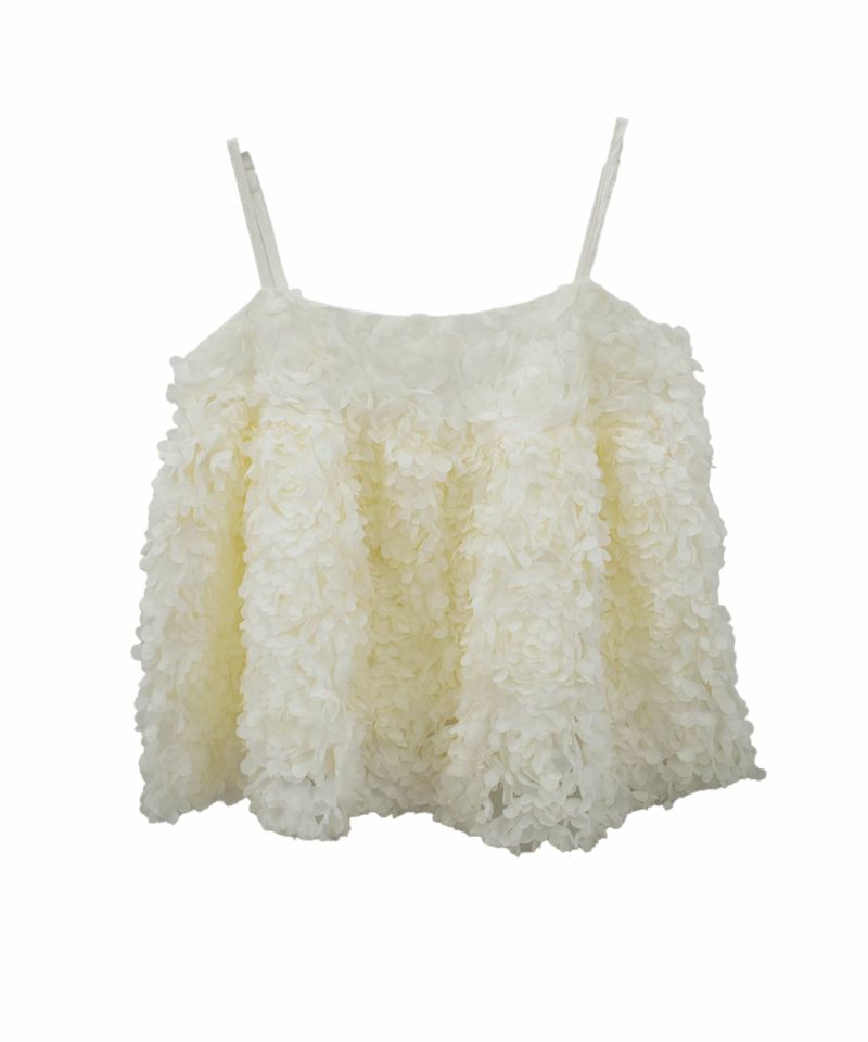 軽やかなベースに、繊細な花びら状の立体装飾を施した贅沢な一枚。