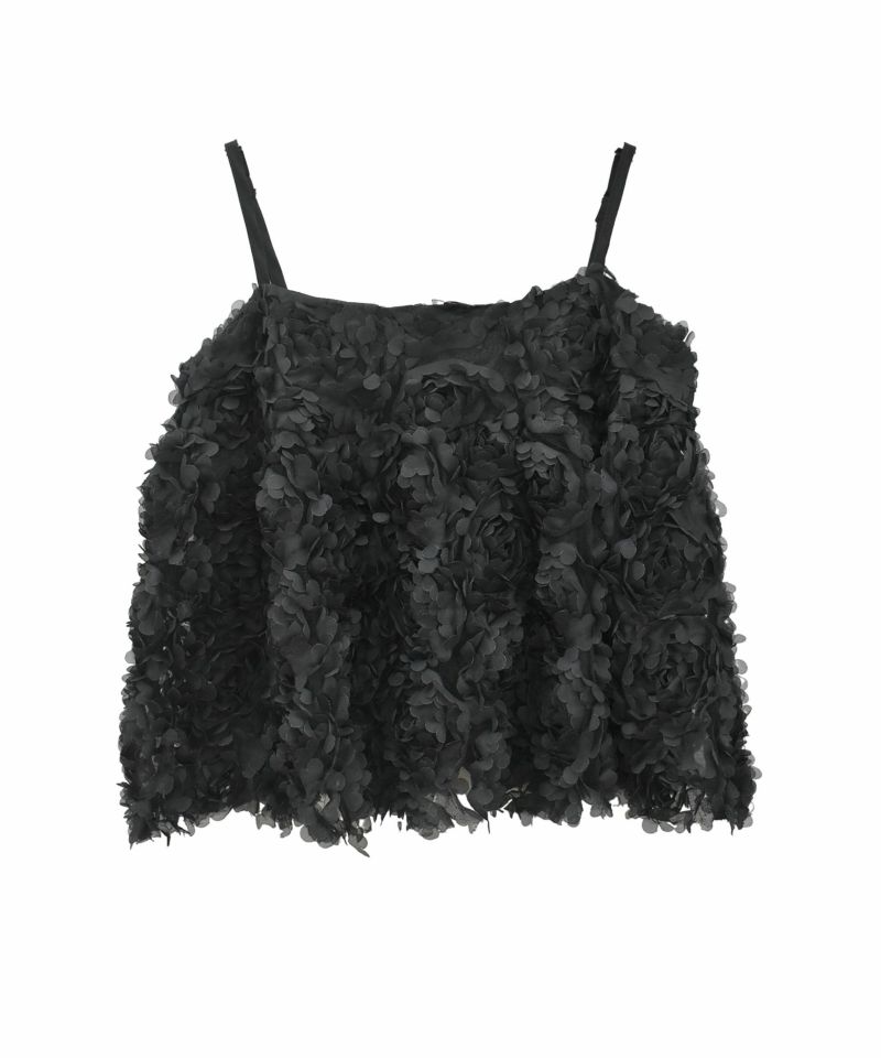 フラワーモチーフが全面にあしらわれた、華やかなキャミソールトップス。