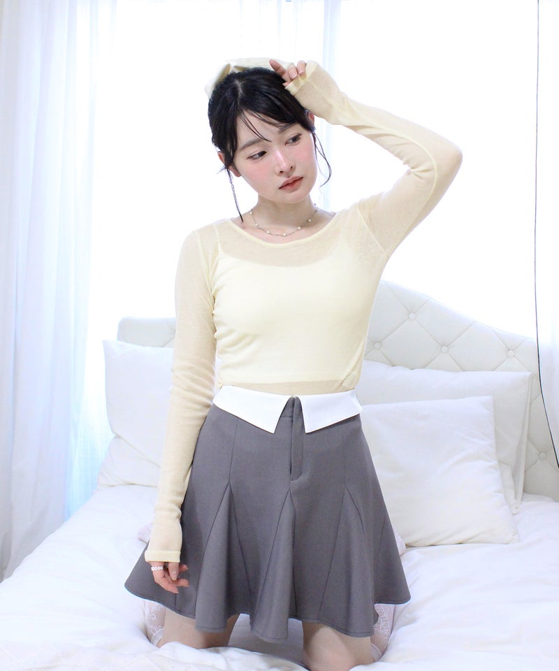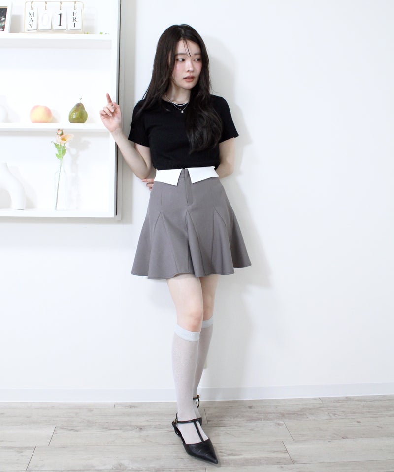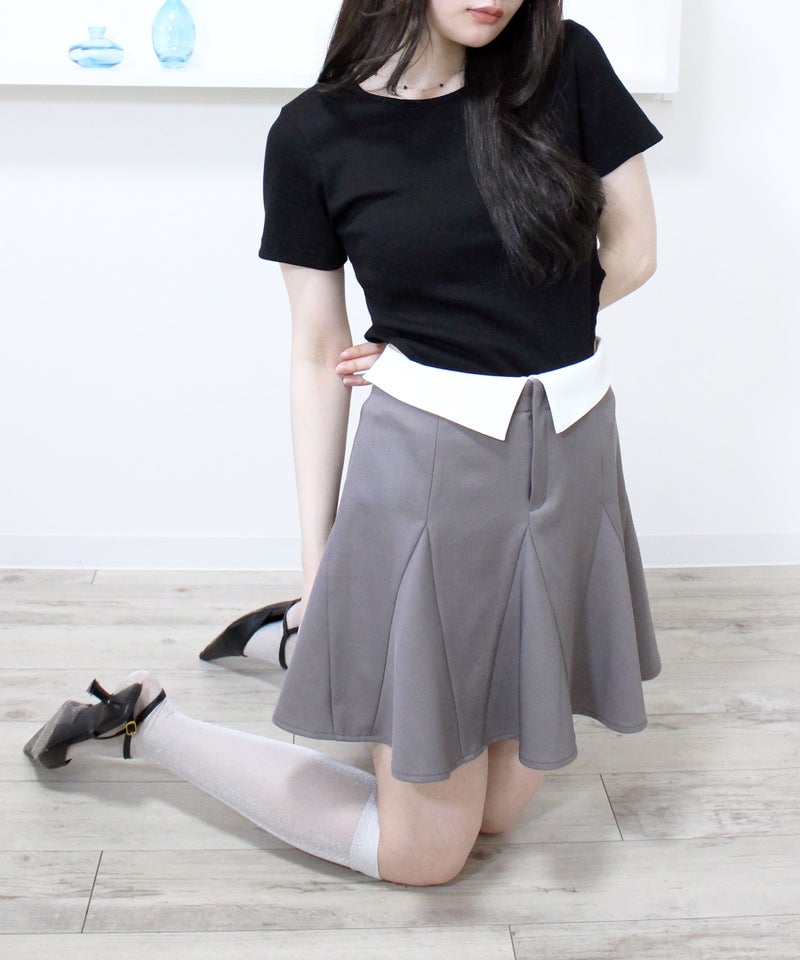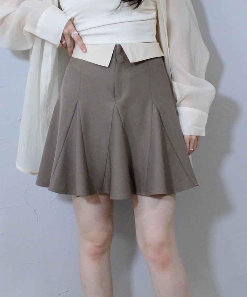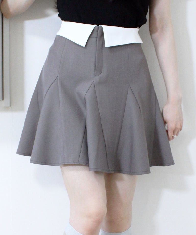 ウエストの衿風パーツの取り外しで2wayの着こなしが楽しめるパネルスカート。