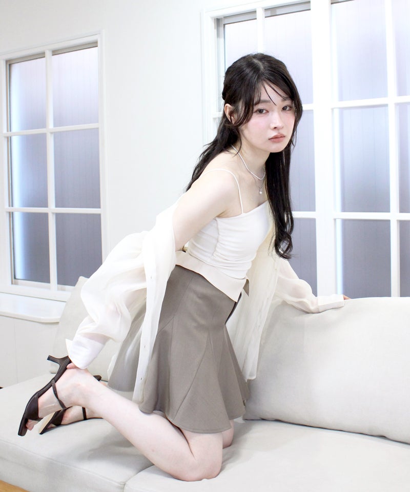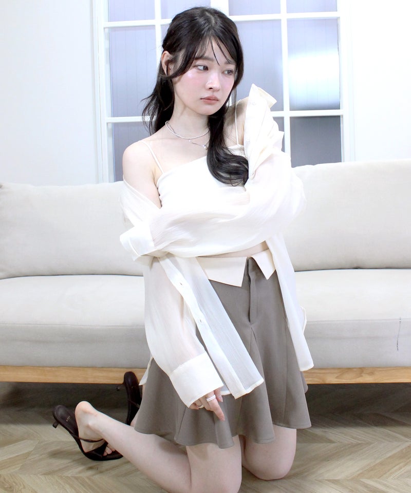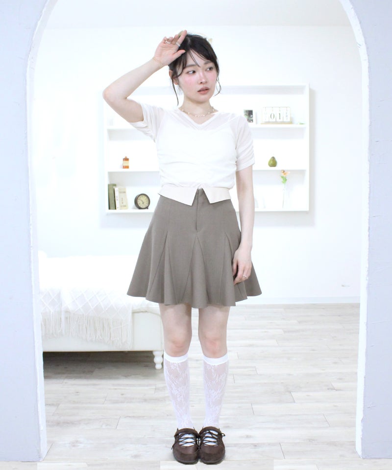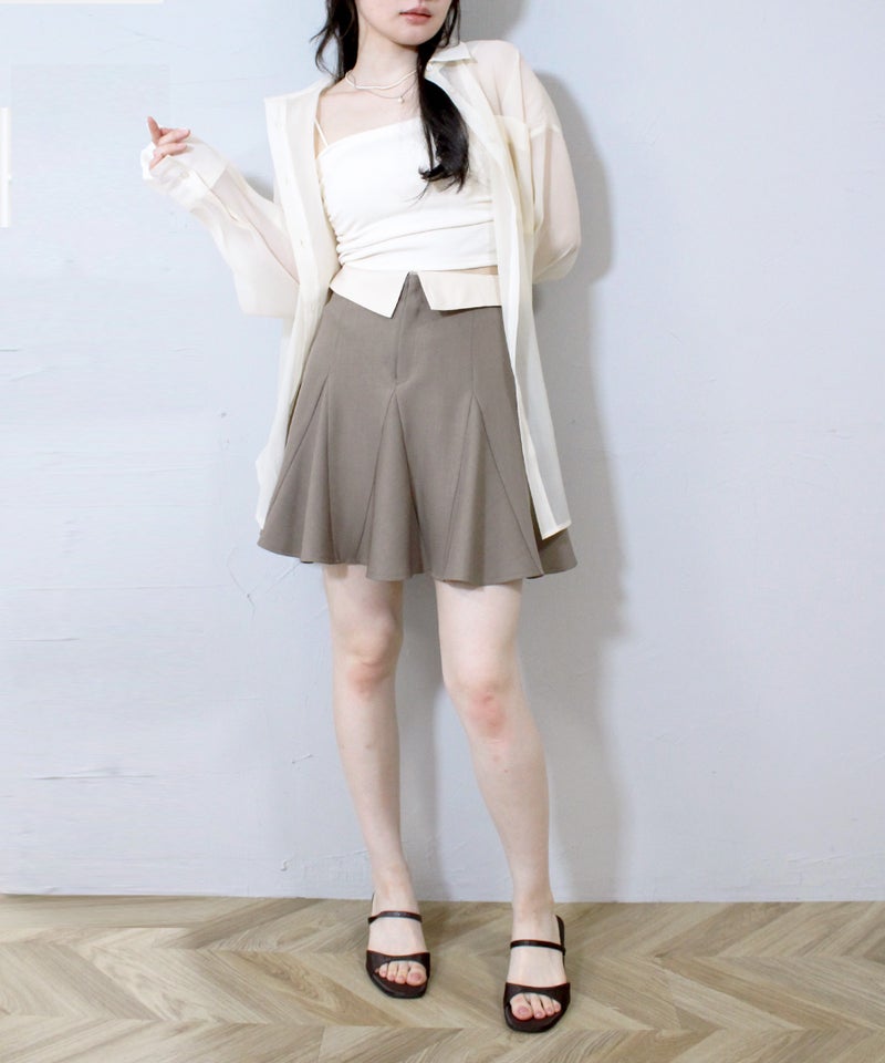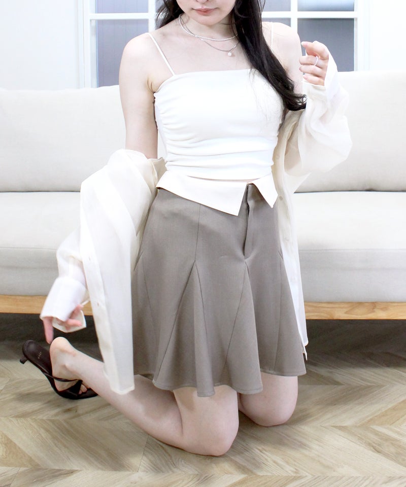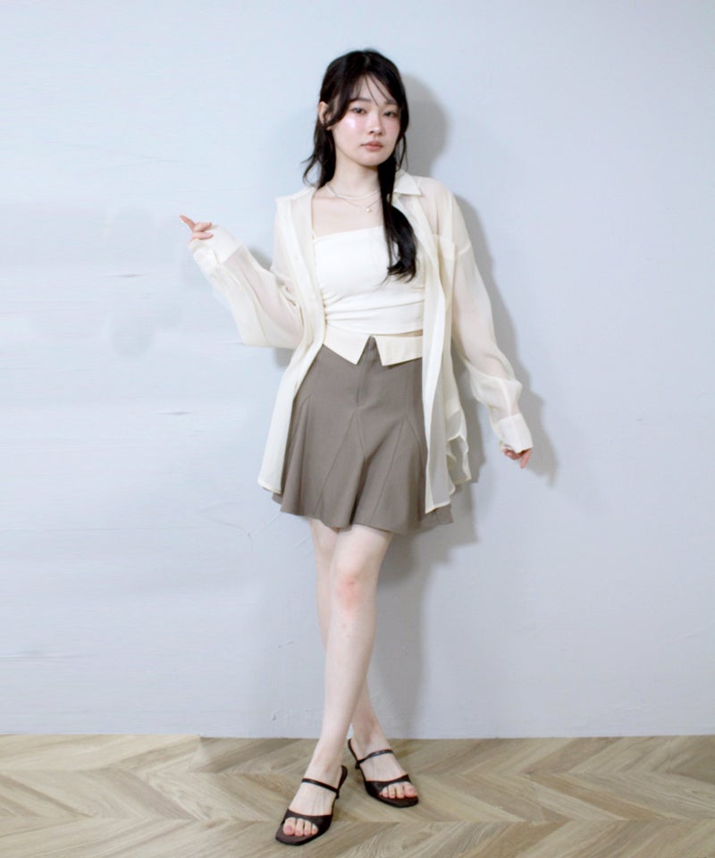 ウエストの衿風パーツの取り外しで2wayの着こなしが楽しめるパネルスカート。