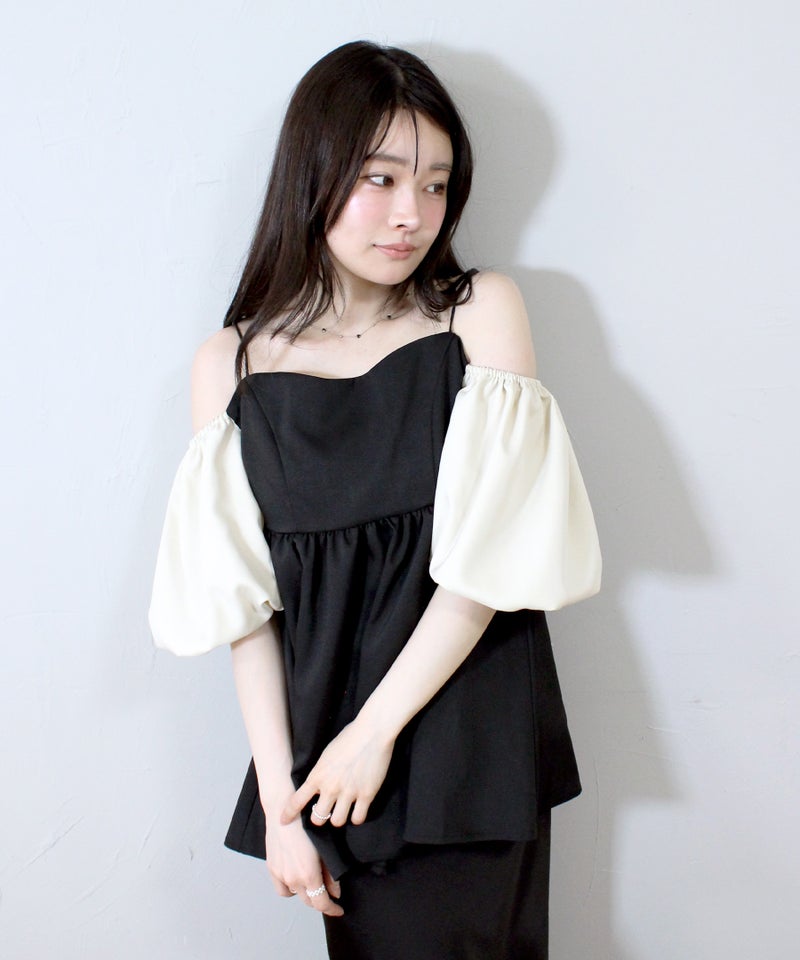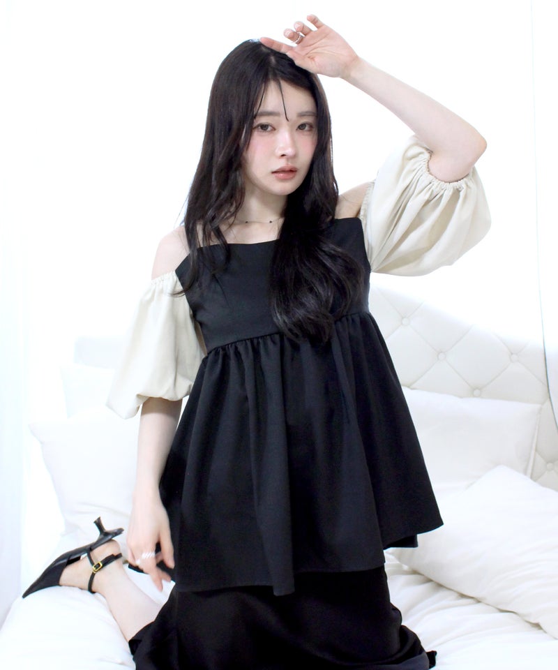 ボリューム感のあるバルーン袖と、落ち感のあるペプラムデザインで、
