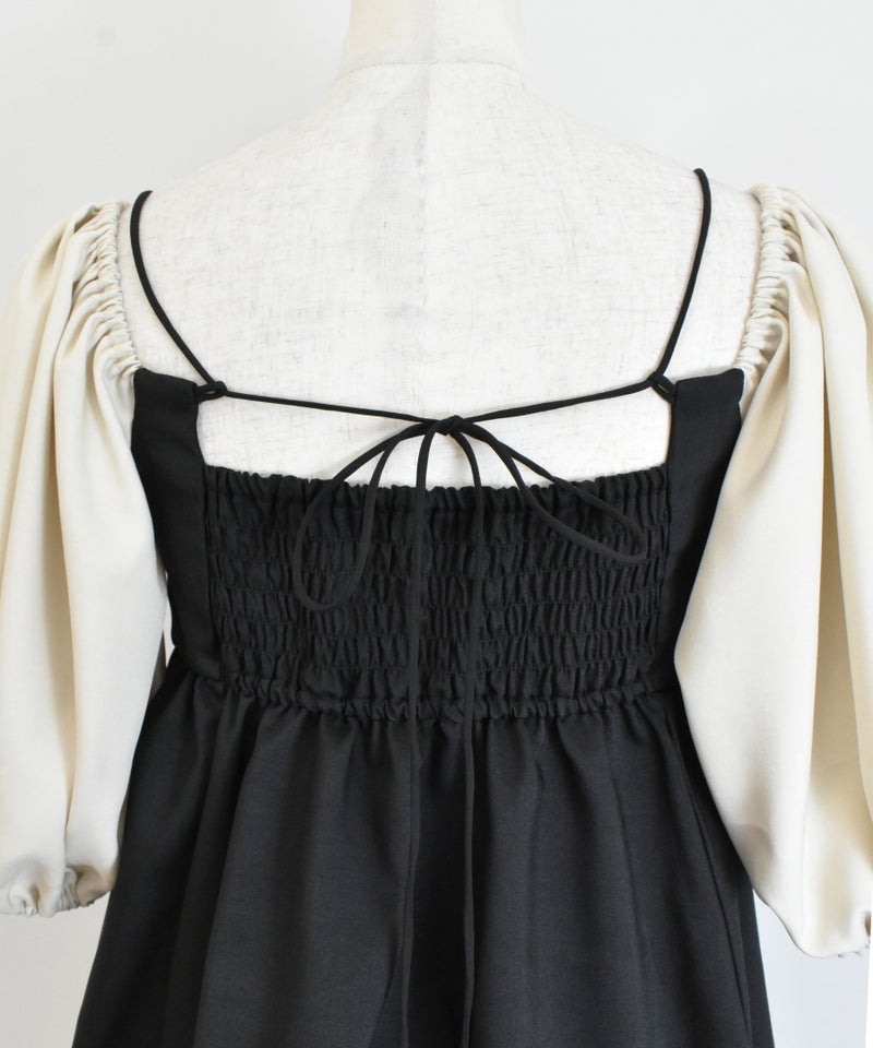 ブラックは袖部分をアイボリーで切り替えた配色デザイン。