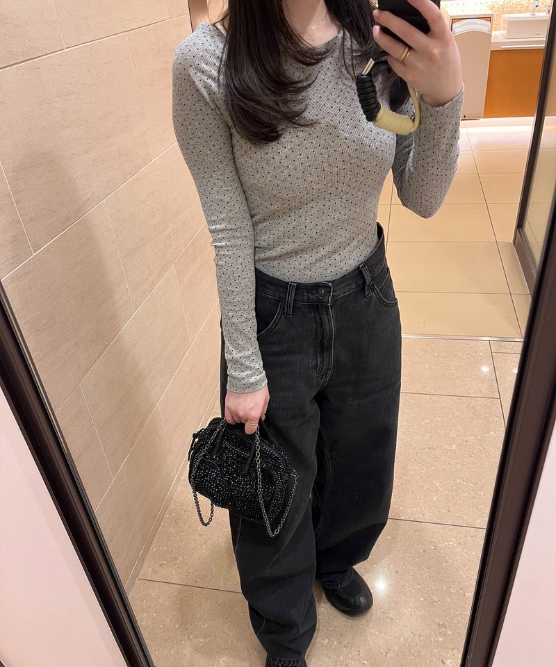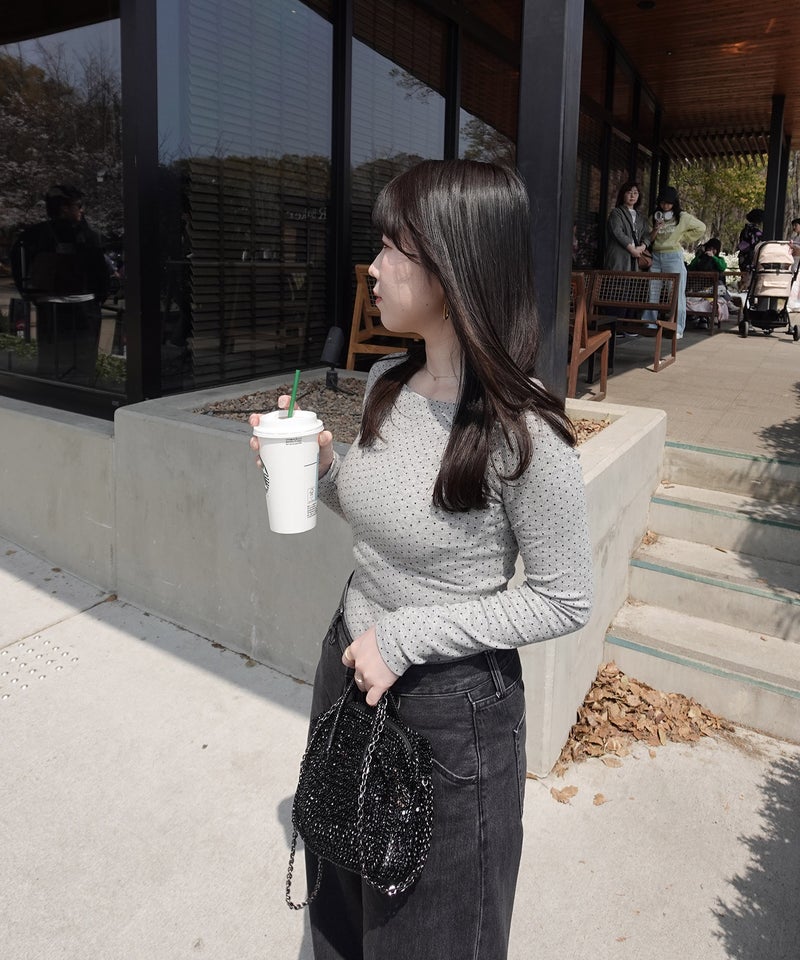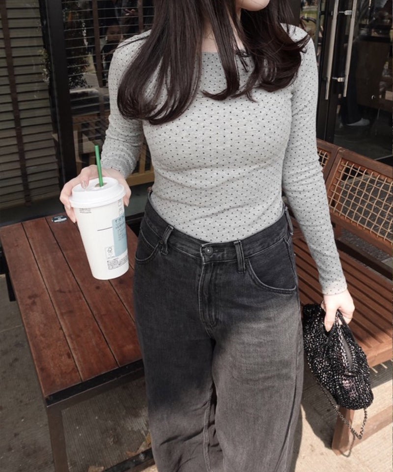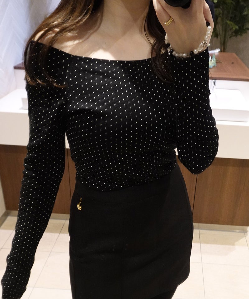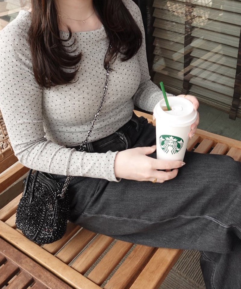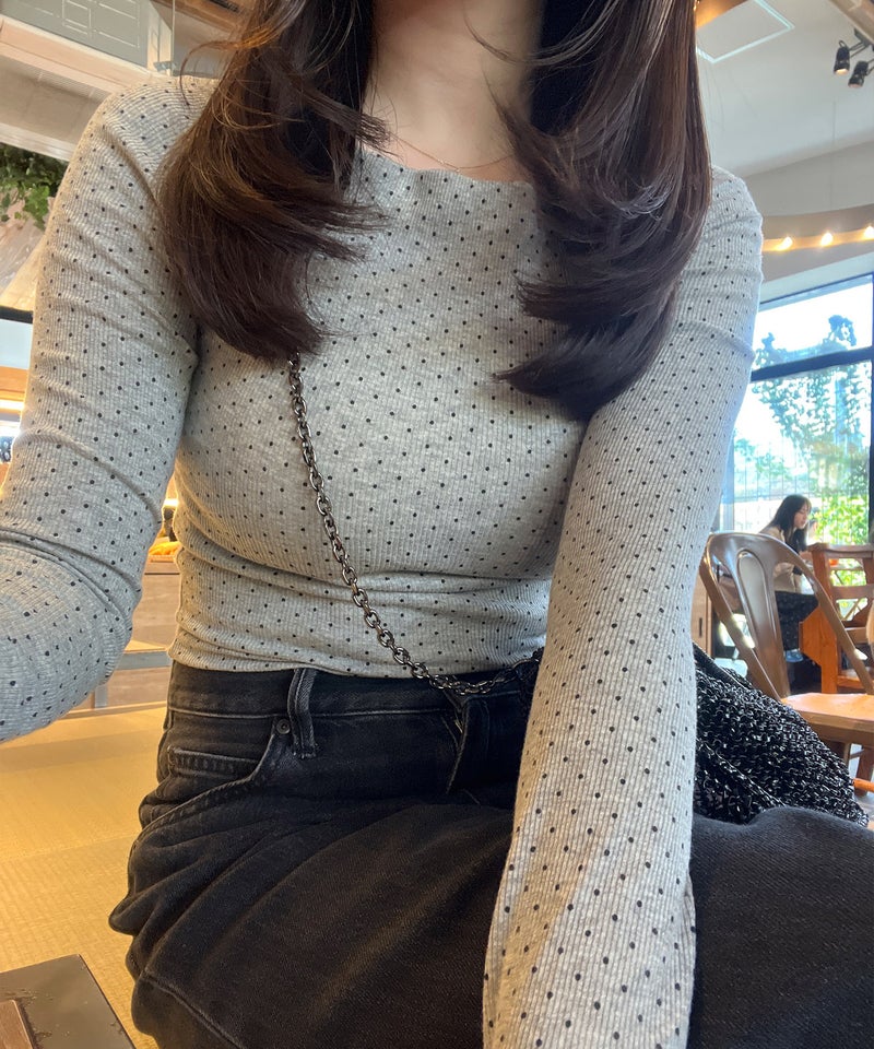 細かいドット柄がさりげないアクセントになったロングスリーブトップス。