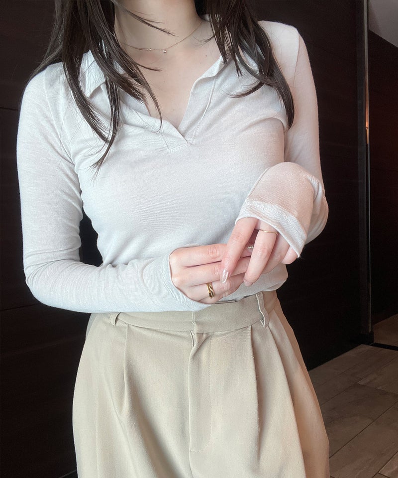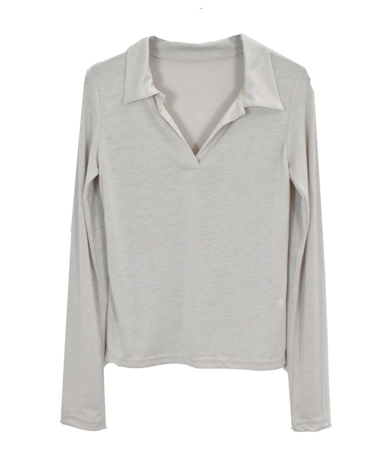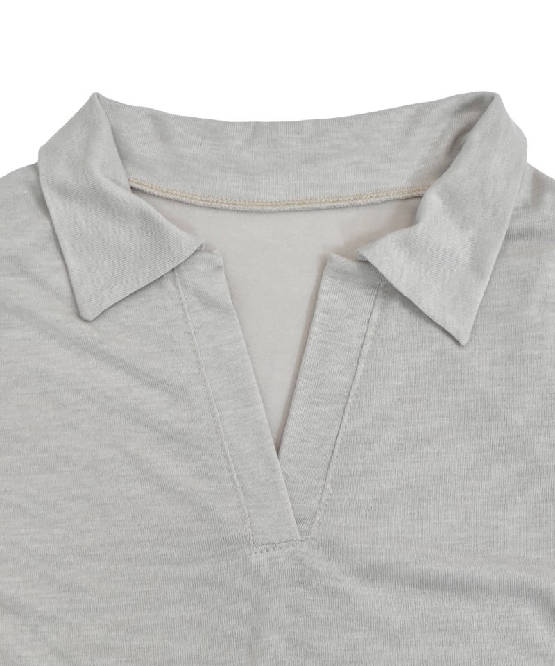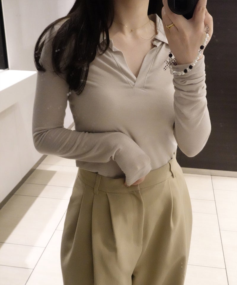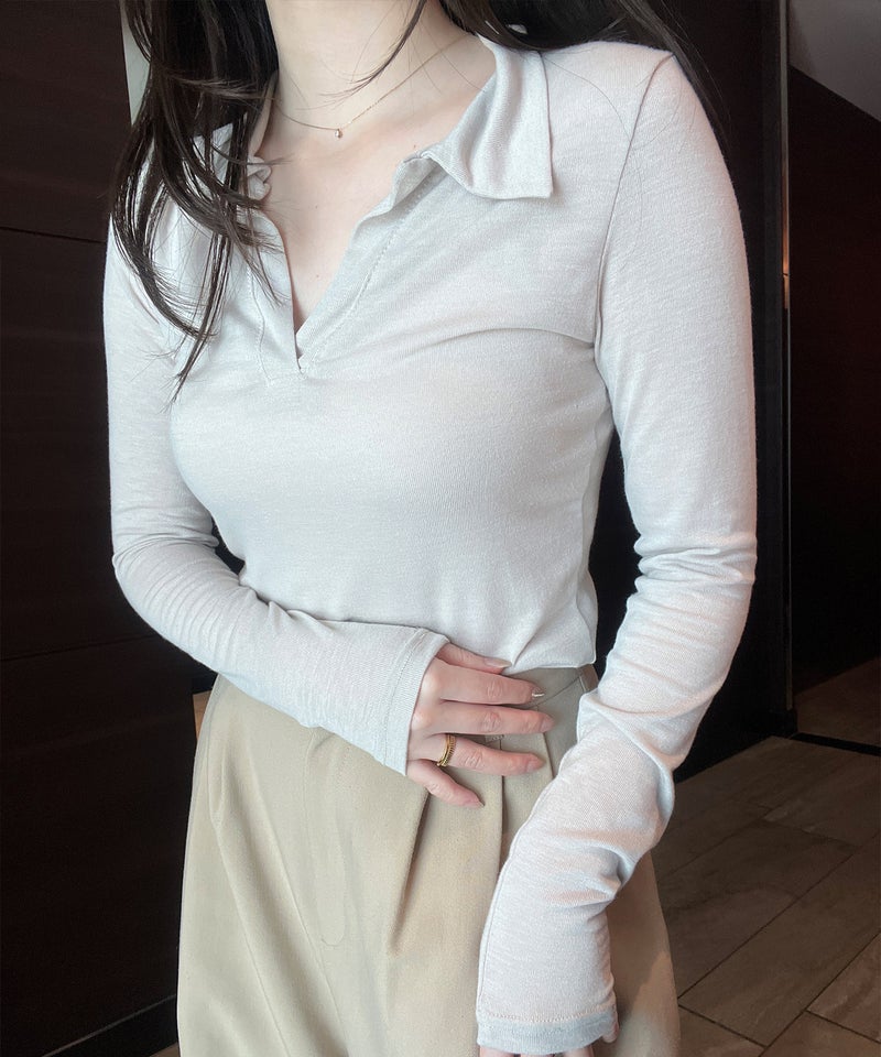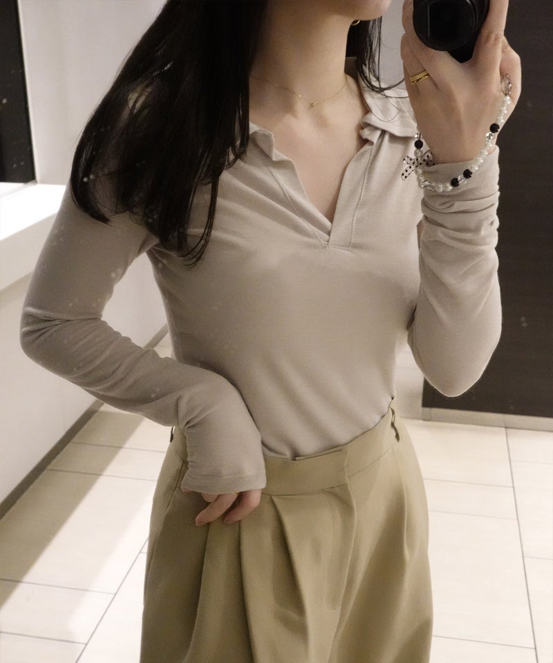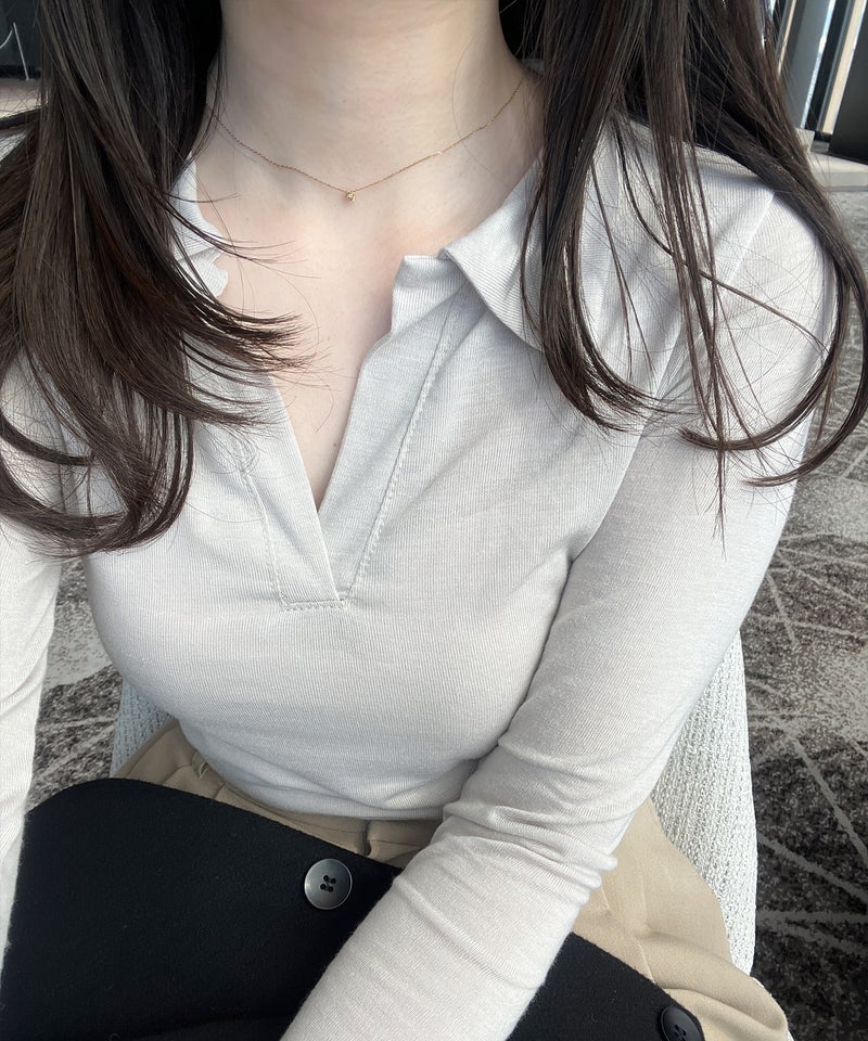 抜け感のあるスキッパーデザインが魅力のロングスリーブトップス。 程よく開いたネックラインとコンパクトなシルエットで、女性らしくすっきりとした印象に。 シンプルながらも襟付きデザインで、きちんと感もプラスした一枚です。