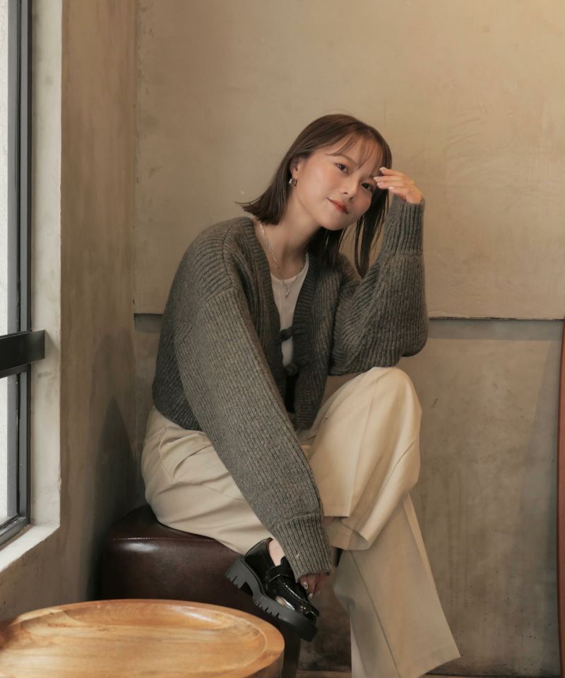 起毛糸のふわふわとした優しい触り心地がふんわり感を演出し 立体感のある柔らかいスタイリングを叶えます。