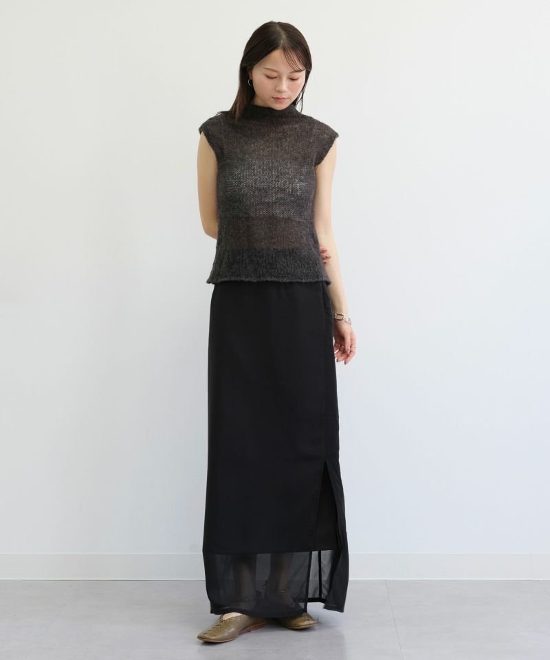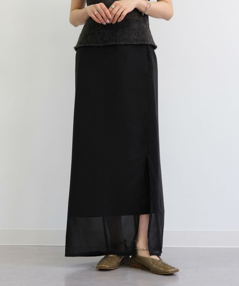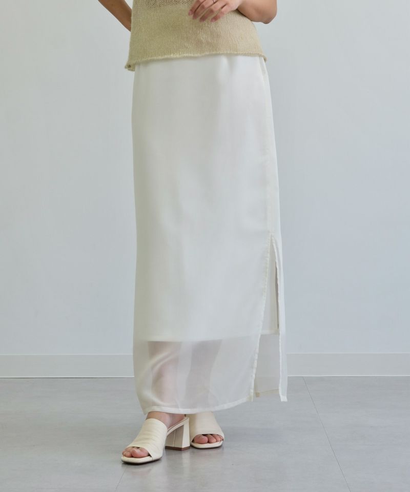 やわらかなシフォン素材とハリ感のある生地がレイヤードされたスカート。