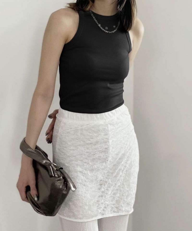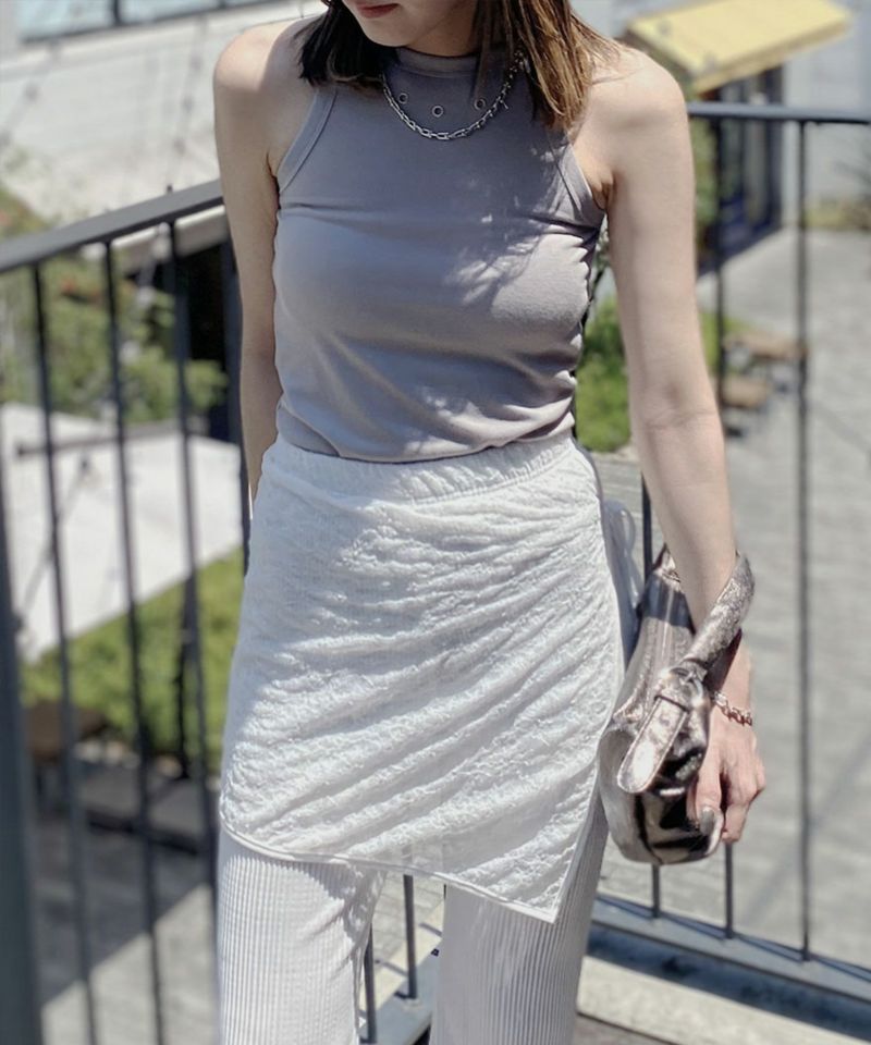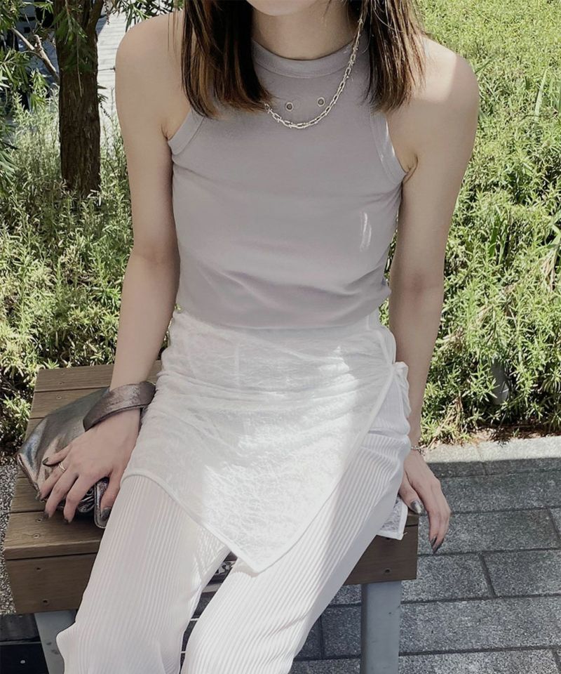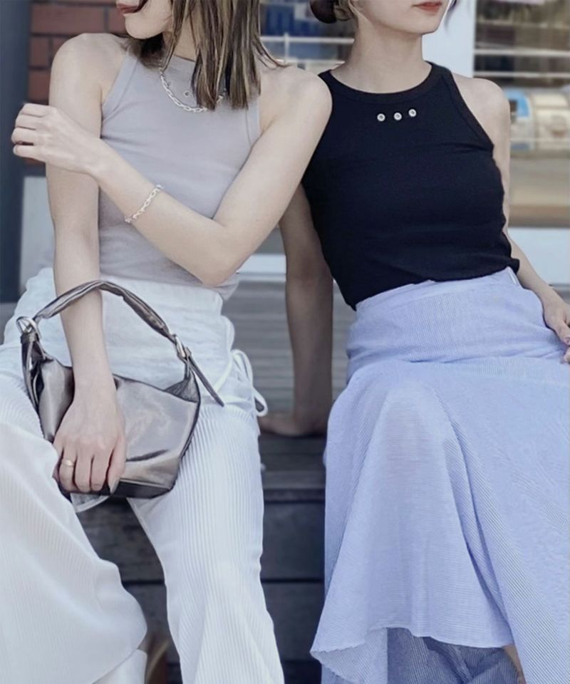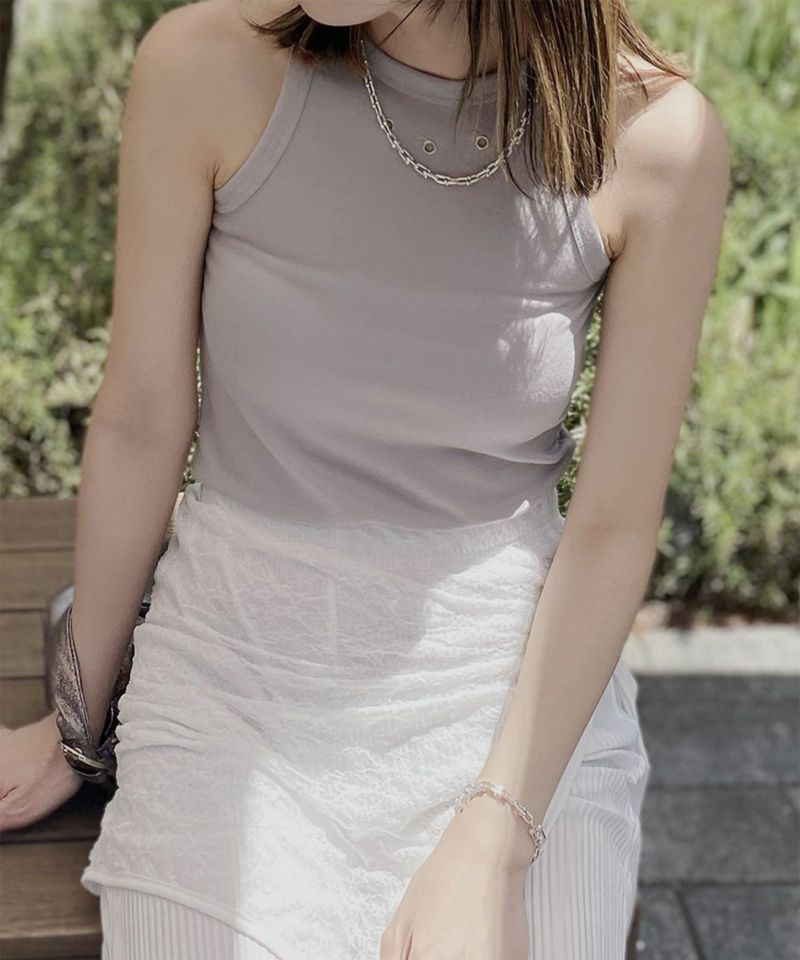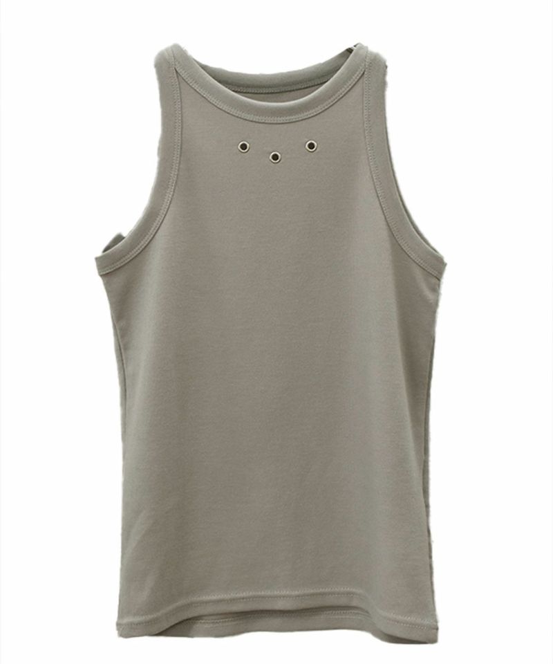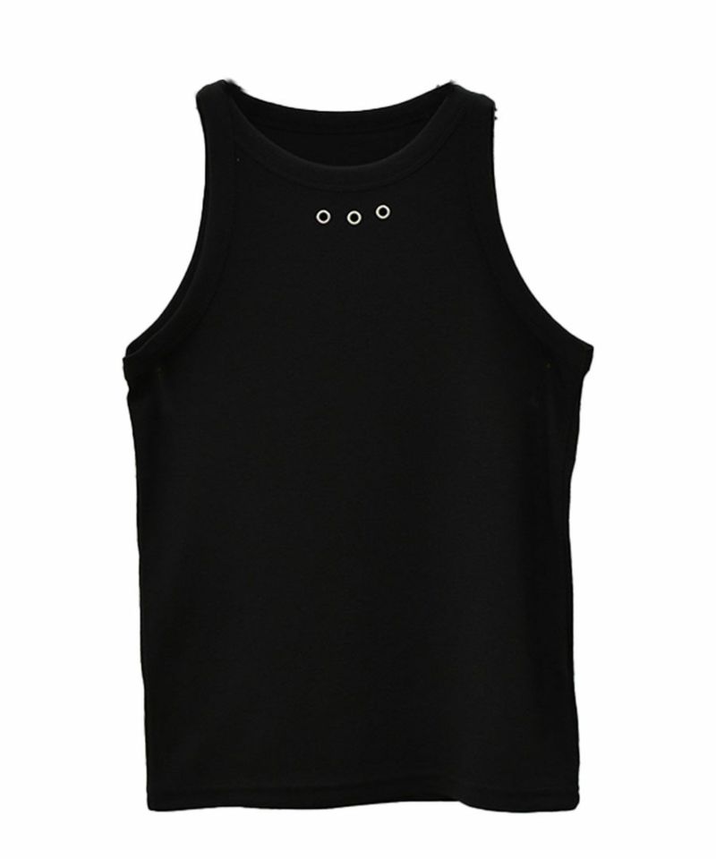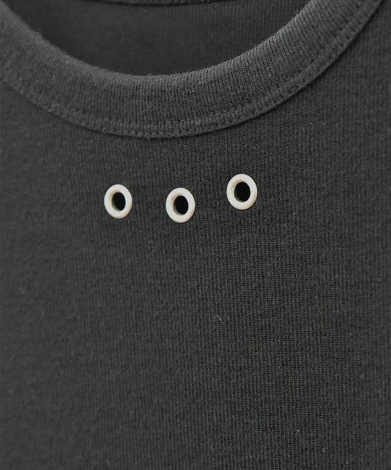 フロント部分についたハトメがポイントのアメスリトップ。 肌触りのいい滑らかな生地としっかりとしたフィット感が着心地の良い1枚。 シルバーのハトメはトレンドのシルバーアクセサリーやバッグなどとの相性抜群◎