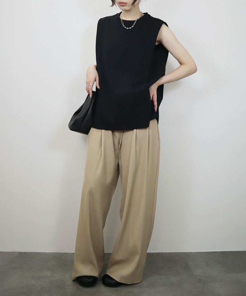 シンプルながらも肩のタックがポイントになった 春夏に大活躍するノースリーブトップス。 立体感のあるショルダーラインが華やかさをプラス✓ 程よくゆとりのあるシルエットで、 1枚でもインナーとしても着まわしやすい万能アイテムです。