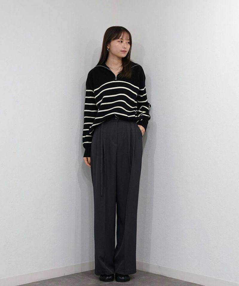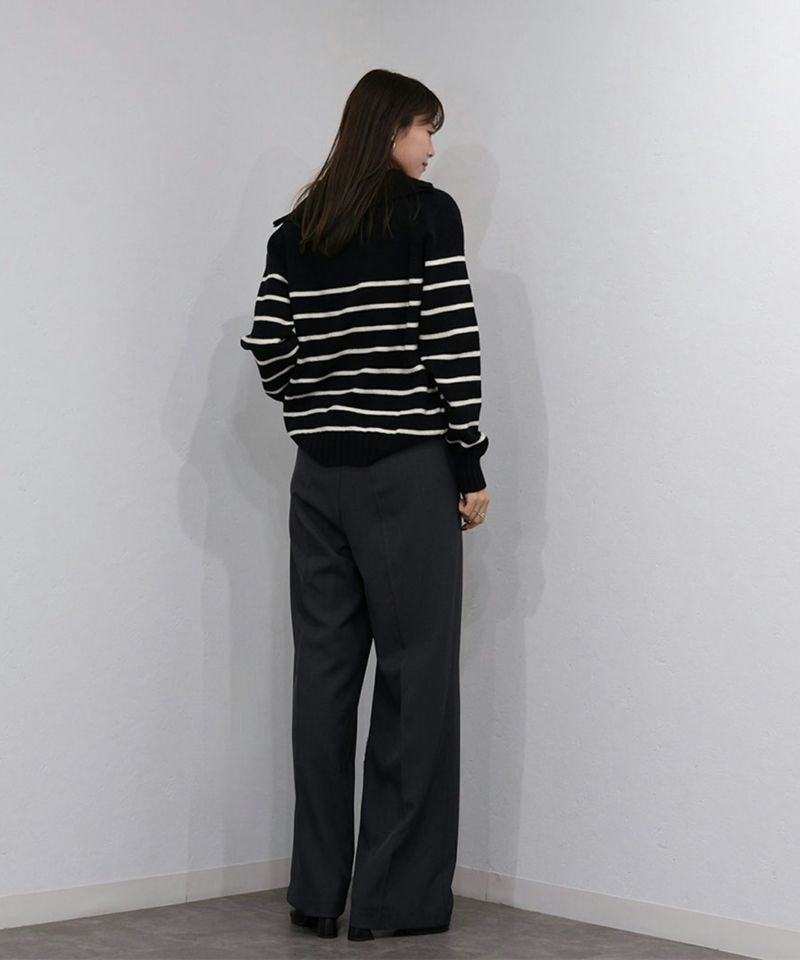 定番のハーフジップのボーダーニット。