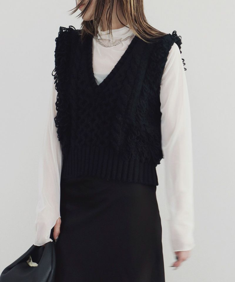 クルーネックやキャミソールと合わせたデコルテを見せるレディライクな着こなしなど、