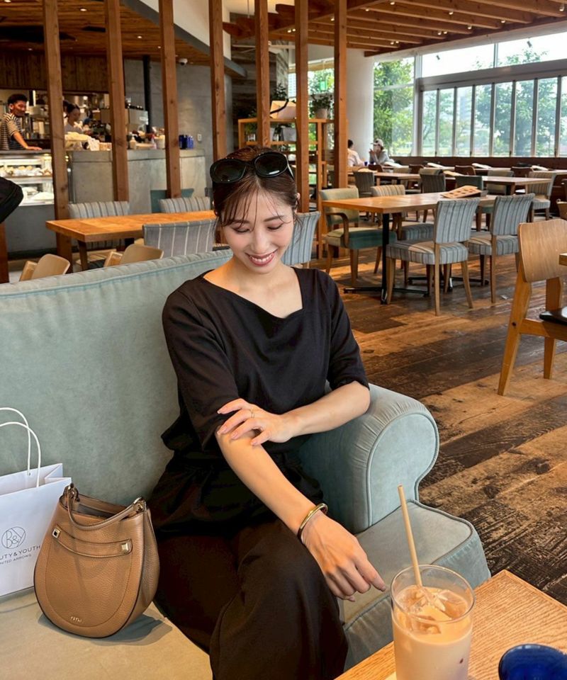 着るだけで大人見えしてくれるアイテム。ゆとりのあるサイズなので、細見えします。
