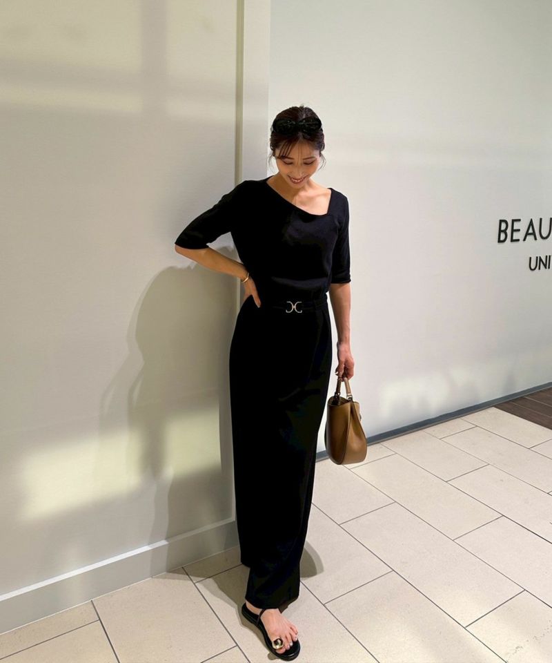 タイトスカートやレイヤードスタイルでモードに寄せるのもおすすめ。