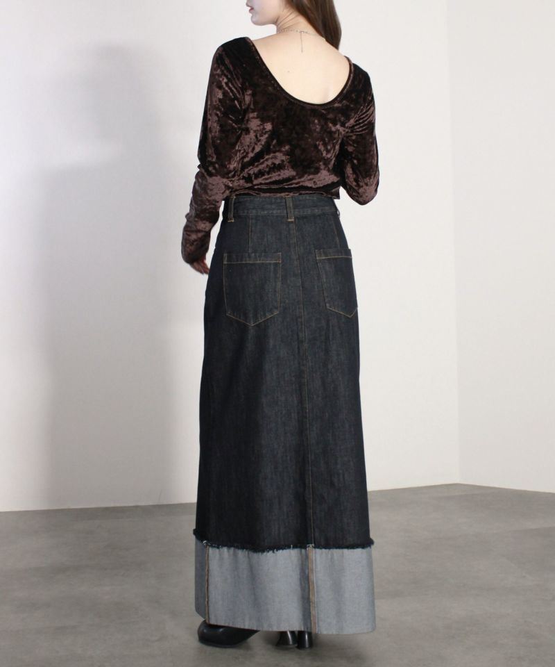 デニムとスカートと合わせ、程よくリラックススタイルにも。