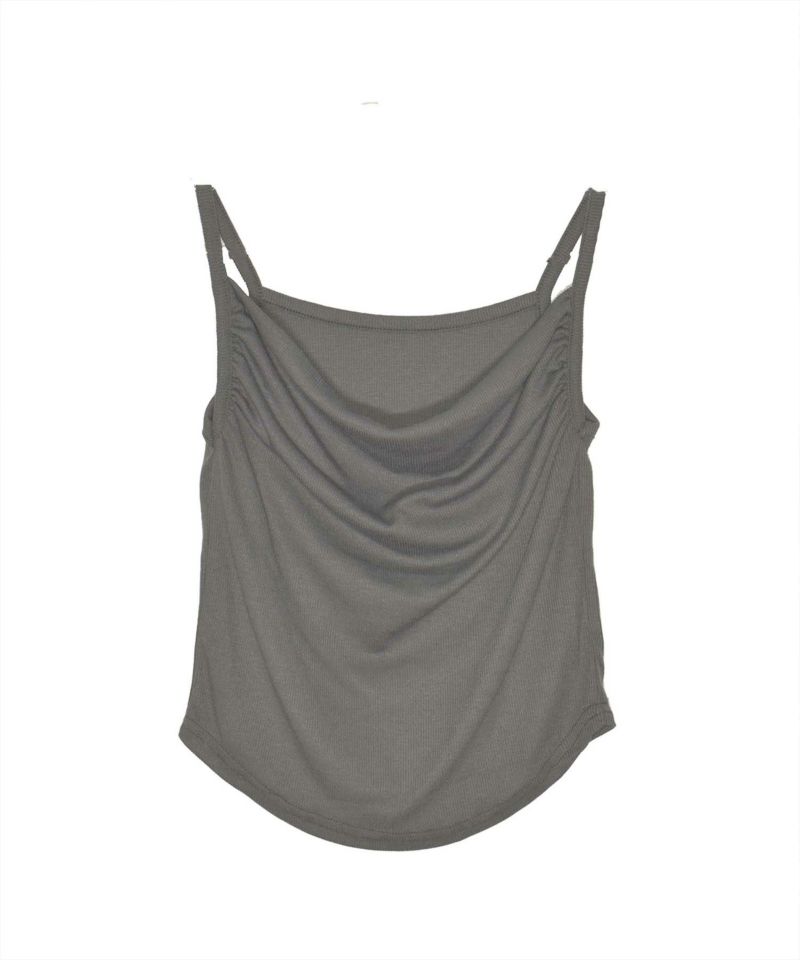 ショート丈の羽織りとインナーのフロントに施されたドレープディテールが立体感を演出。