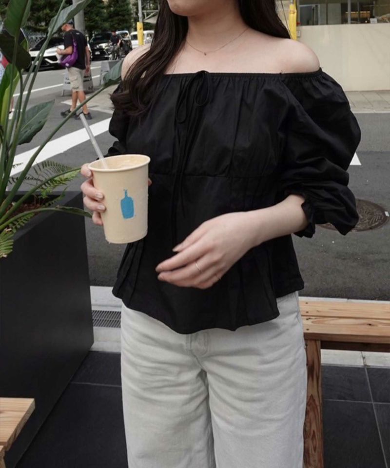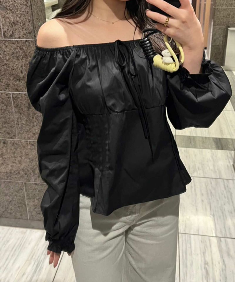ブラウス素材なのでロングシーズン使える嬉しいアイテム◎オフショルデザインなのもレディライクでかわいい!