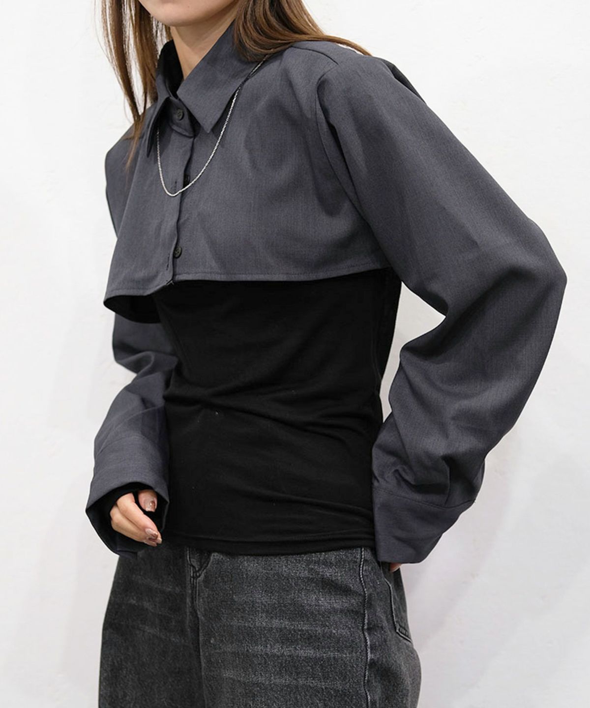 他の画像を見る 【SALE】 cropped regular collar shirt 定価 ¥ 12,100 のところ ¥ 9,900 税込 販売期間 2025/09/02 12:00 〜 カートに入れる お気に入りに登録する