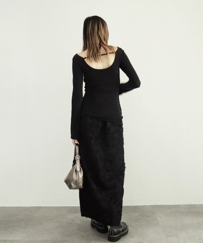 ざっくりと背中が空いたデザインがヘルシーな抜け感の大人ニット。 シアー感のある薄手のニットながらも 透けすぎずほんのりシアーが上品な抜け感を演出。