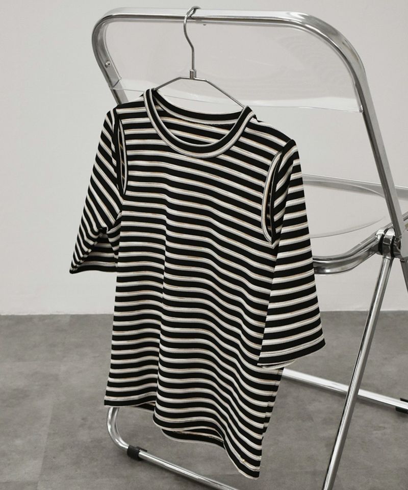 【SALE】 slit shoulder border rib top