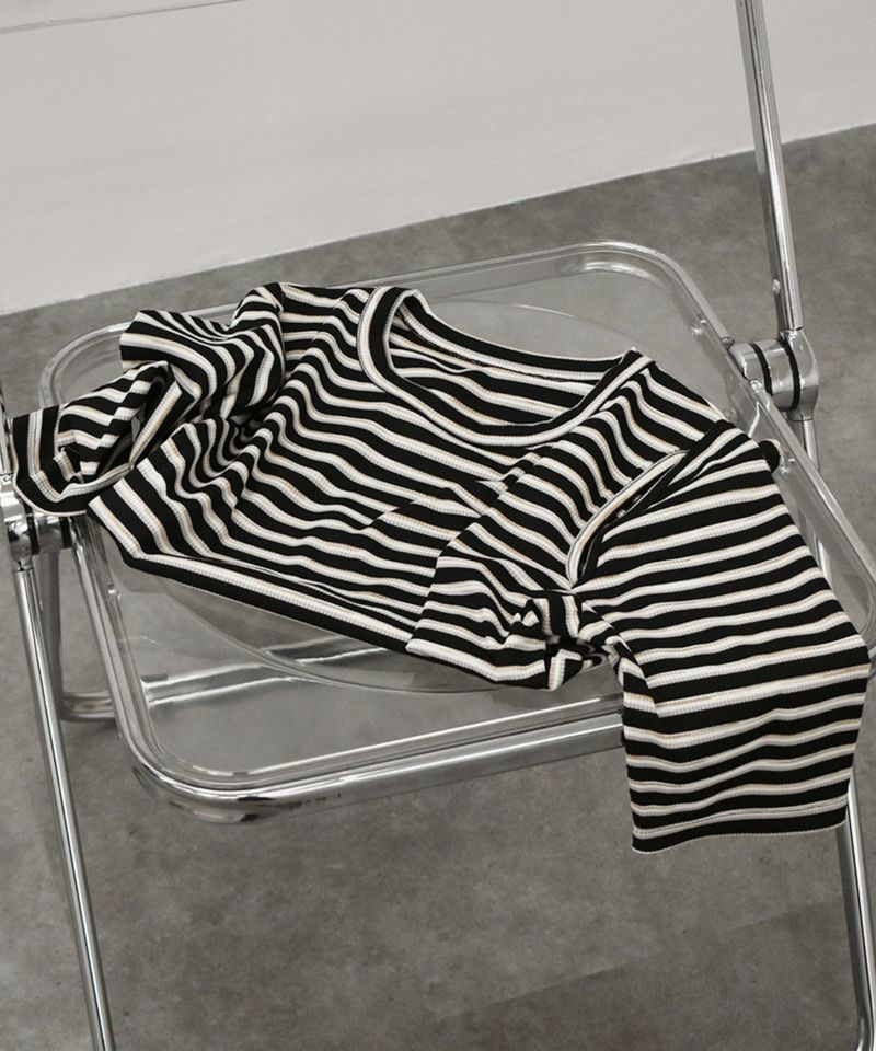 立体感のある細リブ×ボーダー柄が目を惹く、