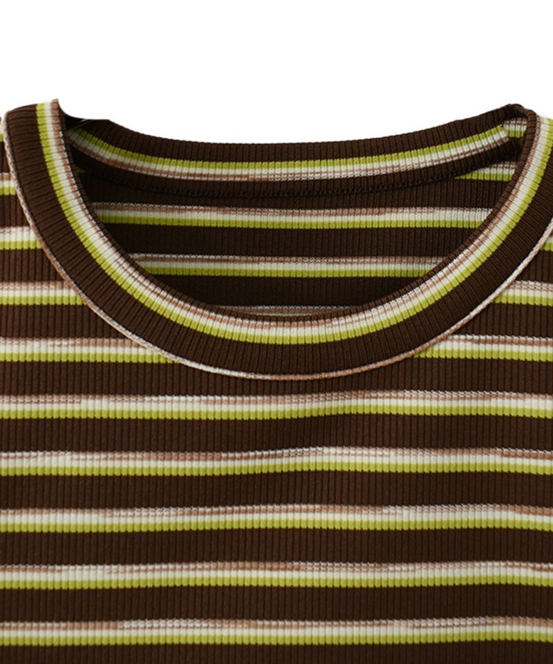 スリットショルダーボーダーリブトップス