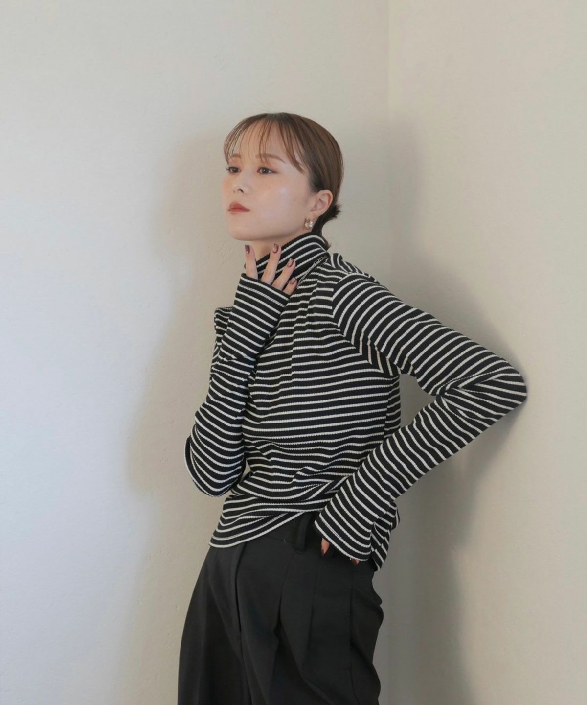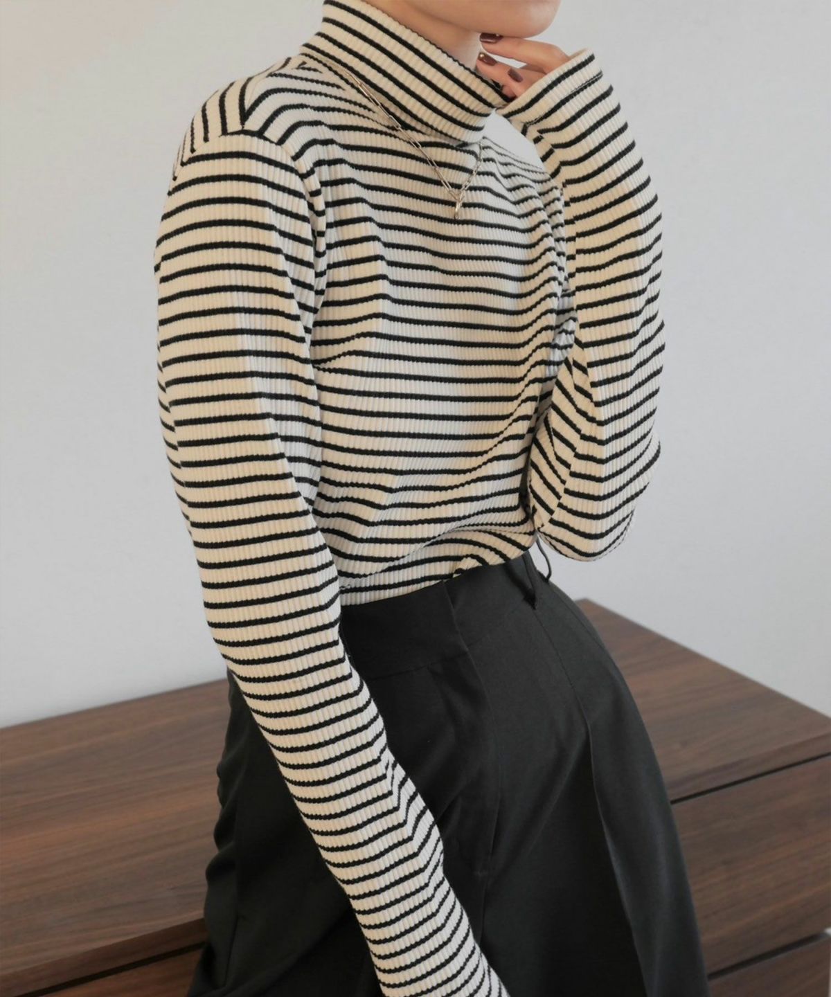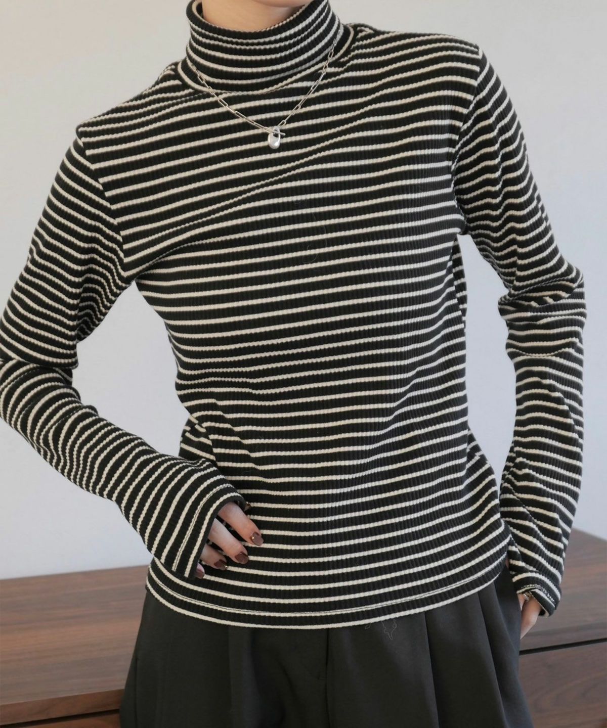 他の画像を見る 【SALE】 border turtle neck rib top 定価 ¥ 9,900 のところ ¥ 8,800 税込 販売期間 2025/11/10 12:00 〜 在庫切れ カートに入れる お気に入りに登録する
