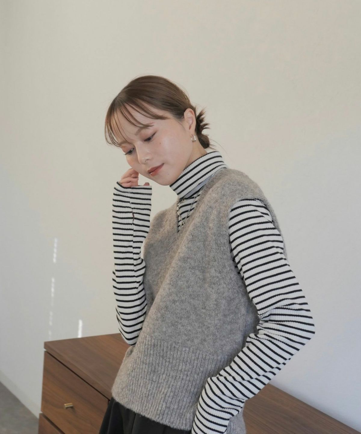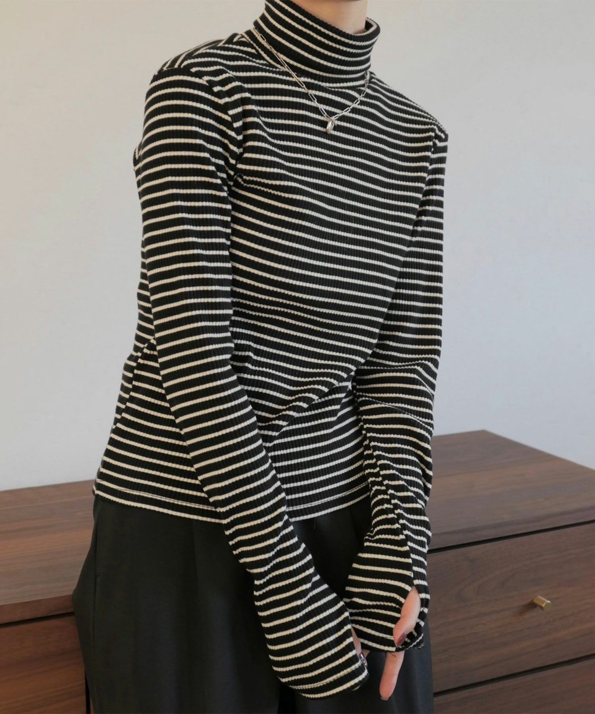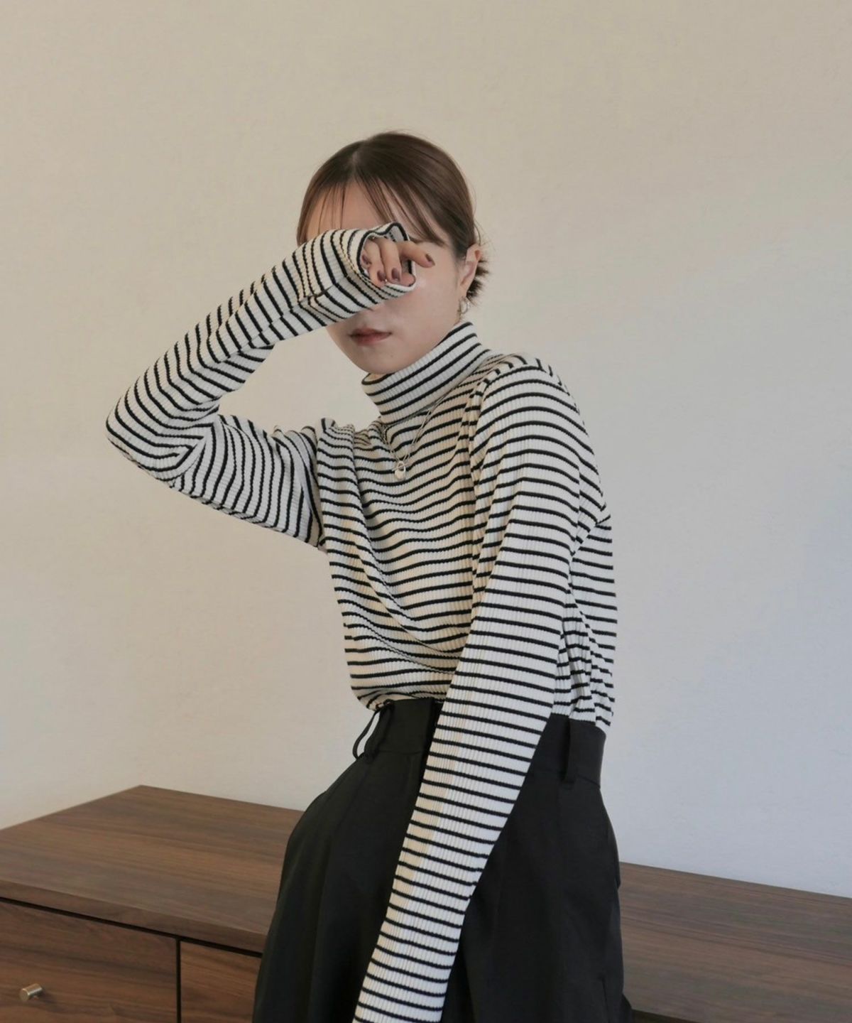 他の画像を見る 【SALE】 border turtle neck rib top 定価 ¥ 9,900 のところ ¥ 8,800 税込 販売期間 2025/11/10 12:00 〜 在庫切れ カートに入れる お気に入りに登録する