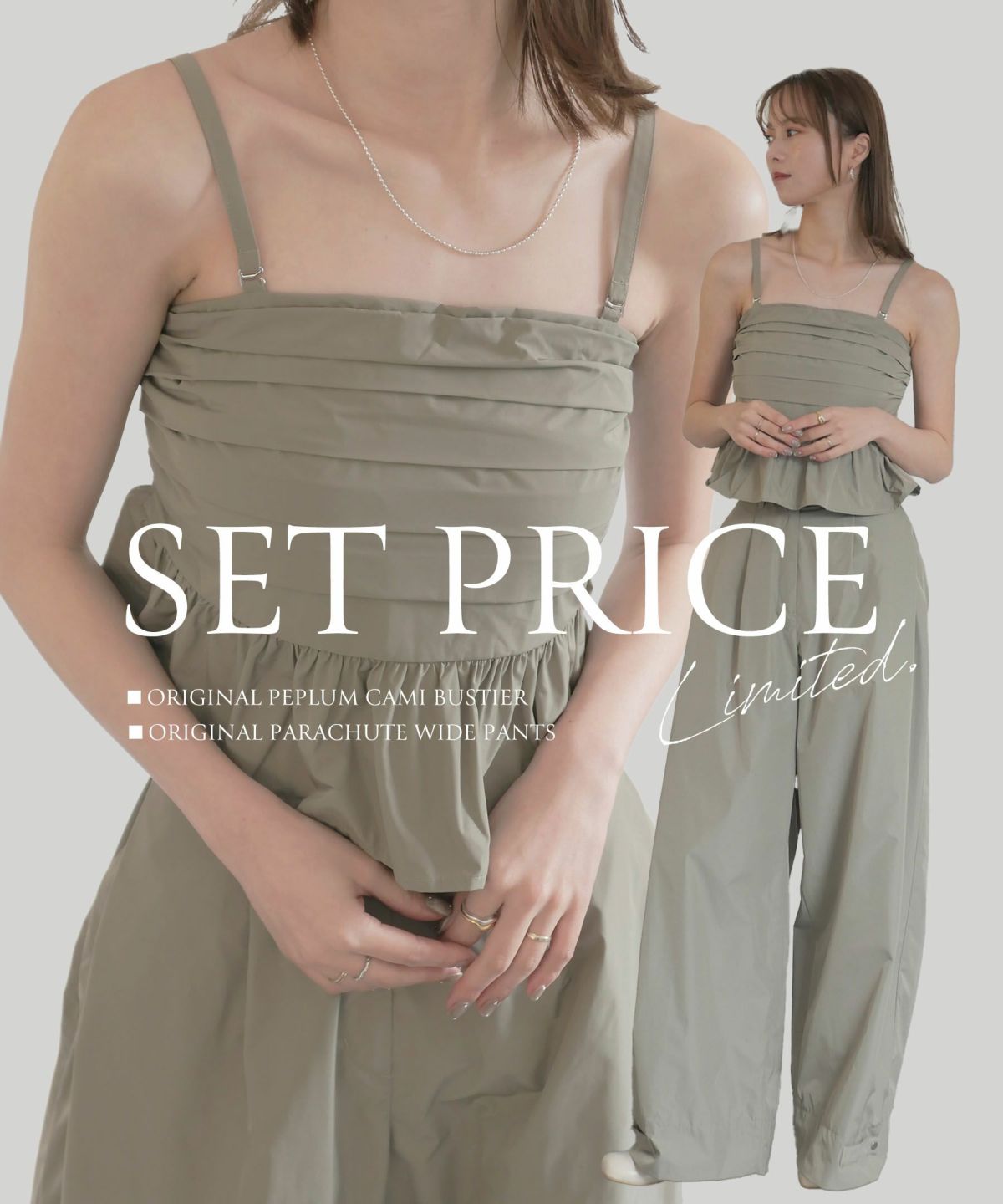 他の画像を見る 【BLACK FRIDAY SALE】 【SET価格】original peplum cami bustier+original parachute wide pants ORIGINAL 定価 ¥ 17,600 のところ ¥ 13,200 税込 販売期間 2025/11/28 18:00 〜 2025/12/02 11:59 詳細を見る お気に入りに登録する